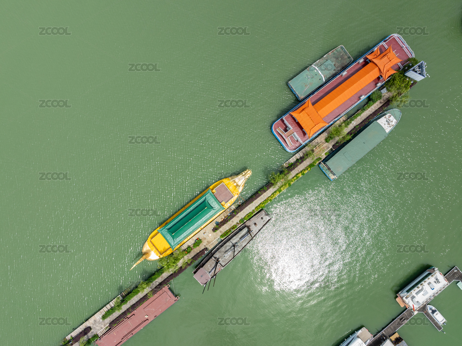 航拍内河里的船只