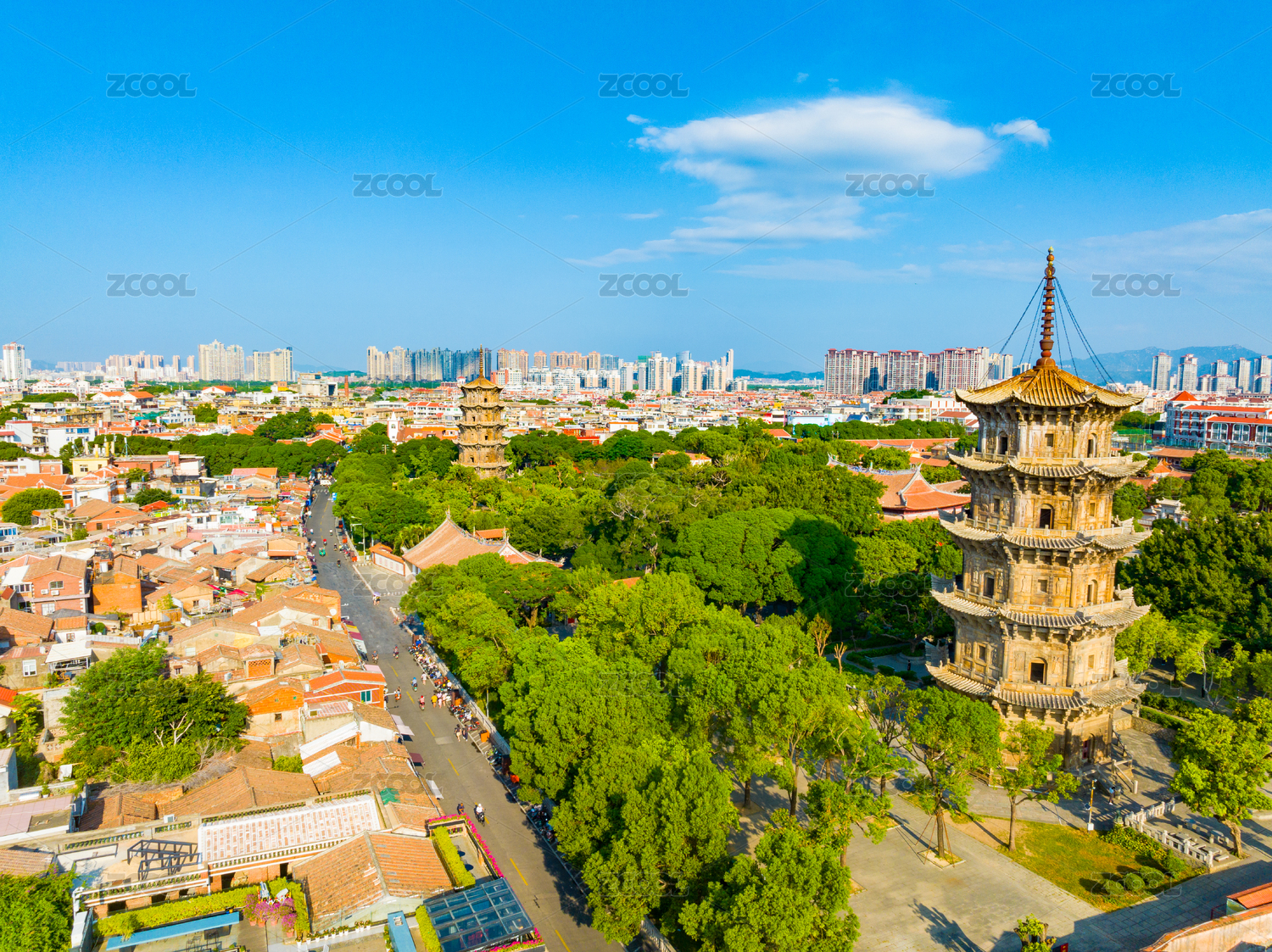 泉州,开元寺,老城区,风光,航拍,福建,泉州市,寺庙,老街,东西塔