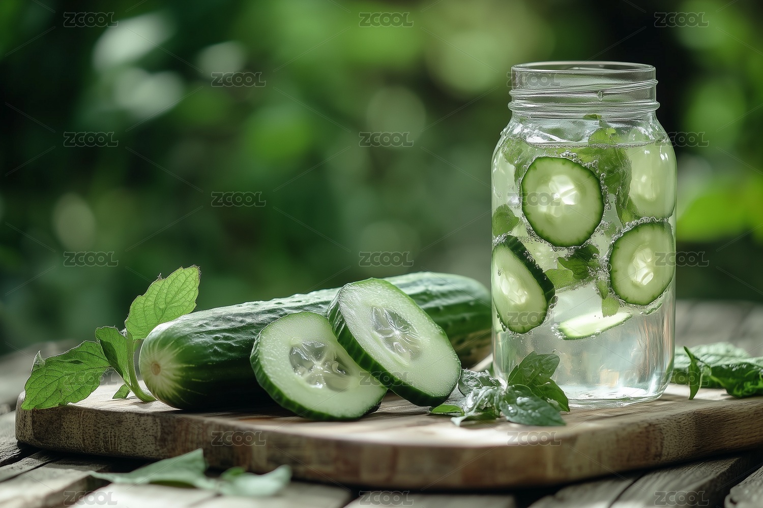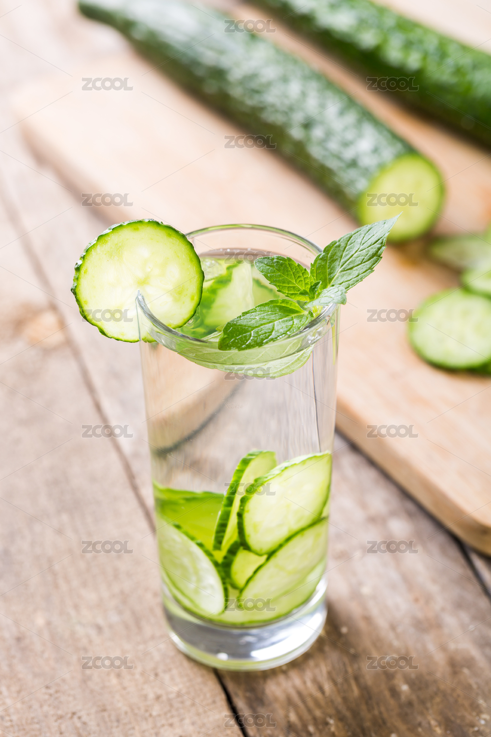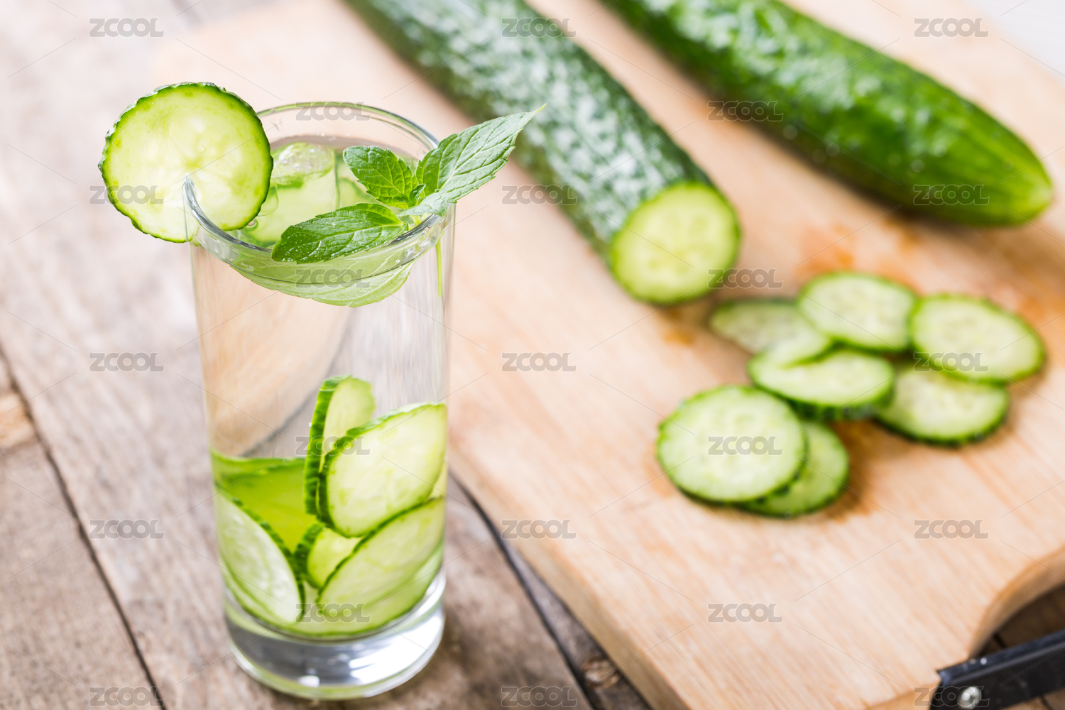 一杯黄瓜水在桌子上,健康养生,排毒水