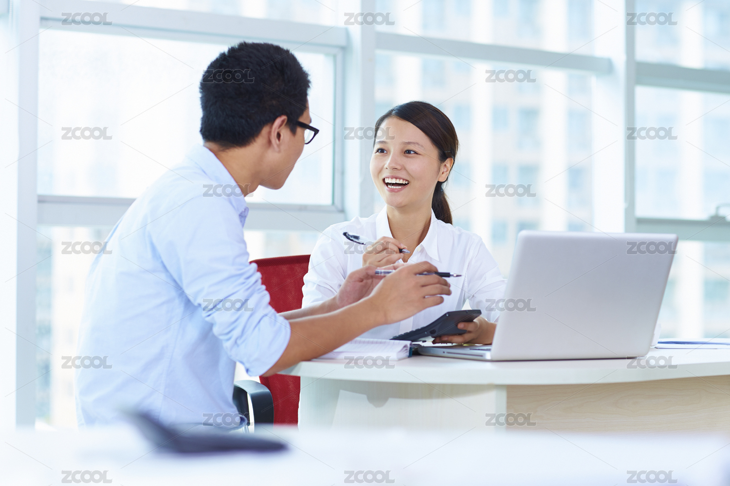 年轻的亚洲商务人士在办公室合作,现代办公环境