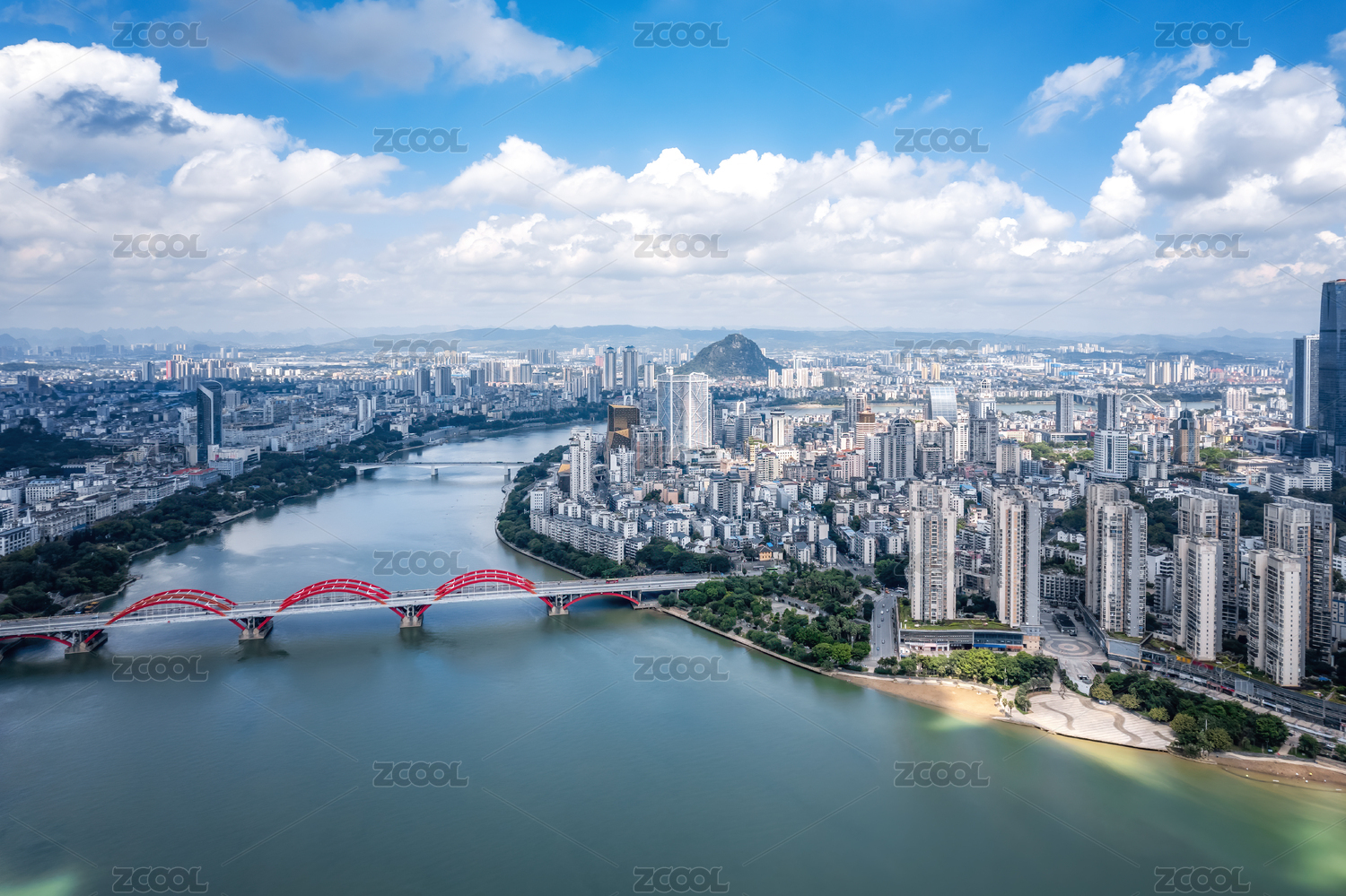 中国广西柳州城市航拍风光柳江两岸高楼建筑