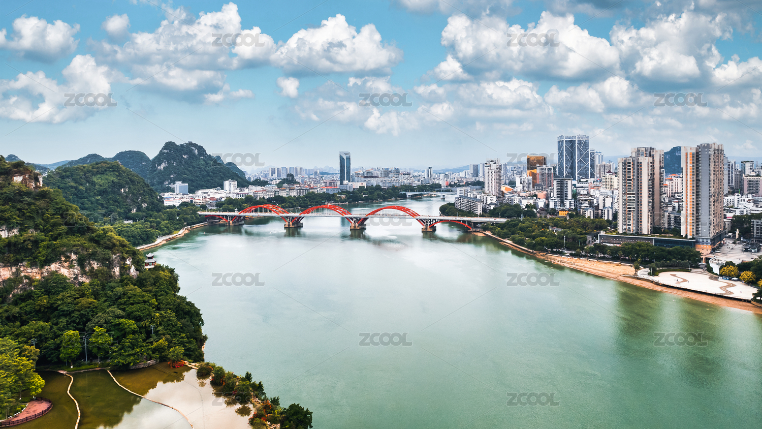 广西柳州城市风光,航拍柳江两岸和文惠桥