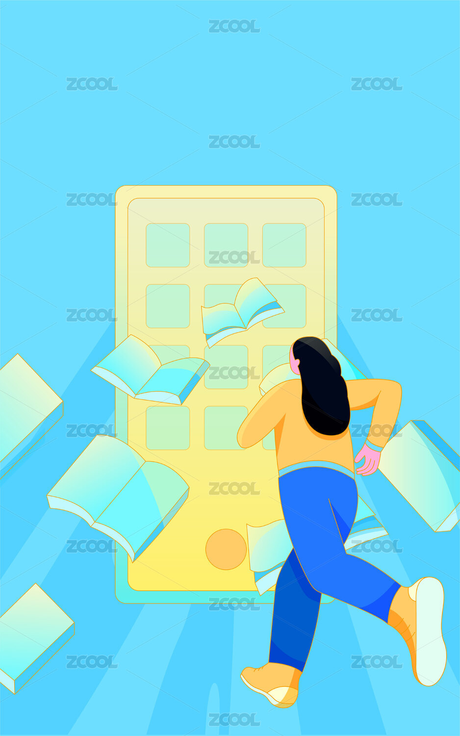 人物奔跑学习开学插画学生高考冲刺加油海报
