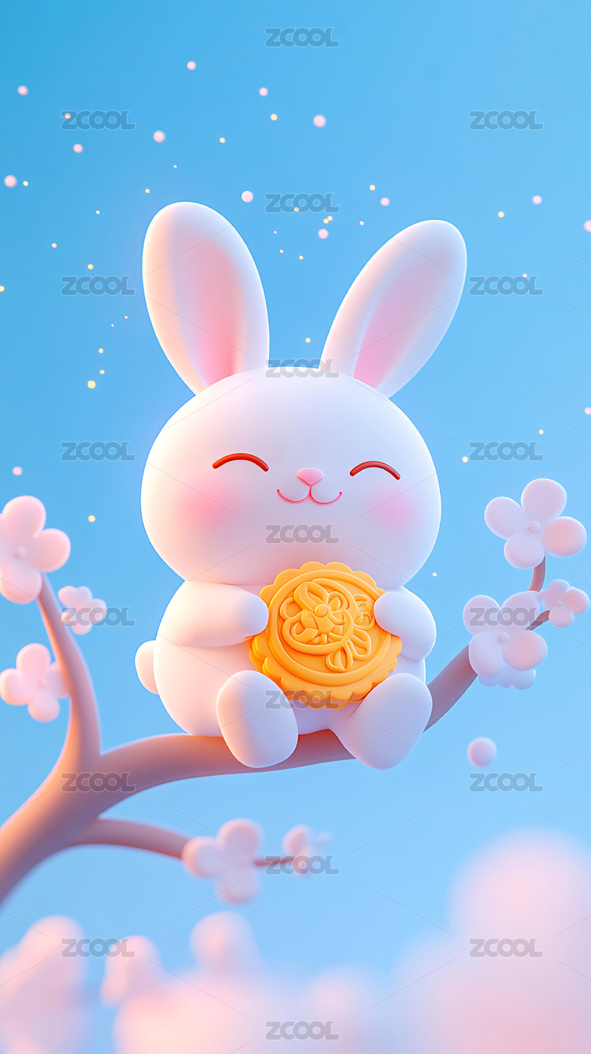 中秋节的可爱玉兔赏月3D插画