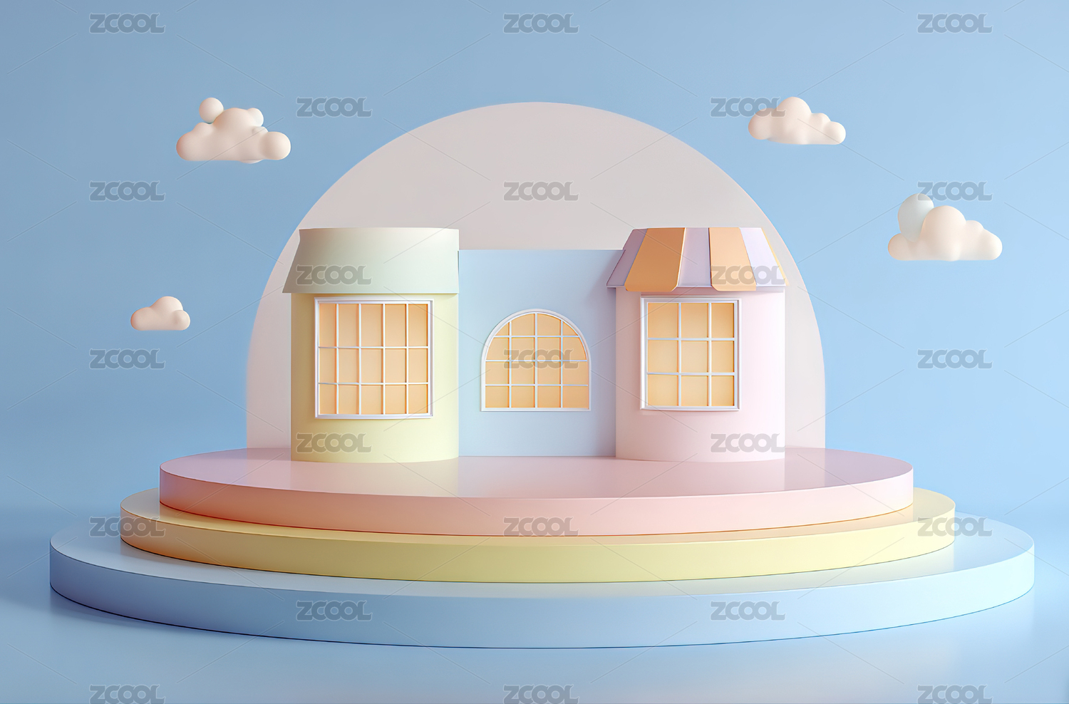 建筑,城市,城镇,三维,3D,景观,插图,街道,等距,房子