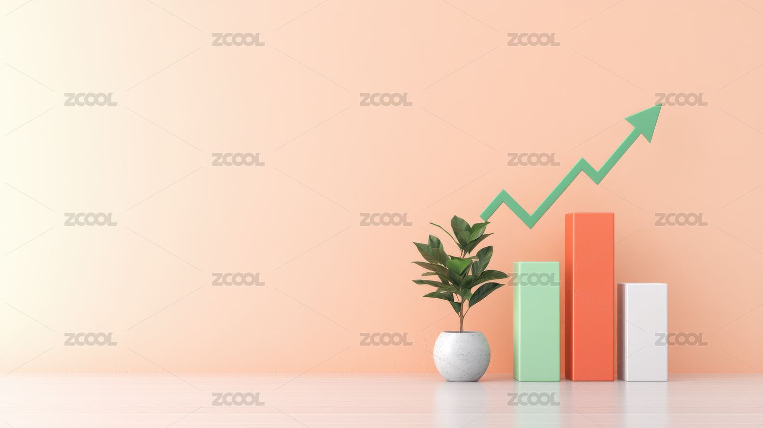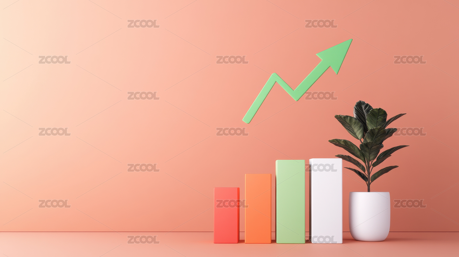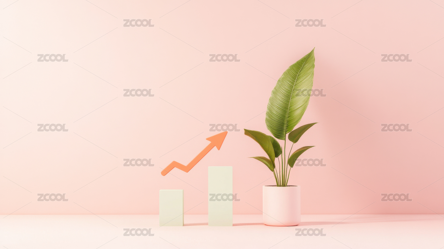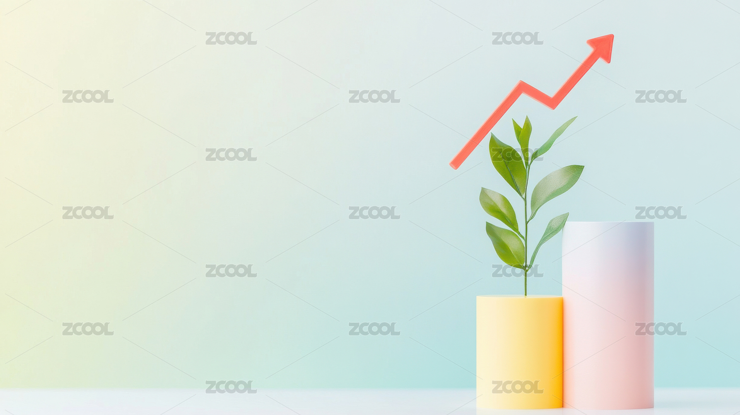植物与成长箭头的静物场景