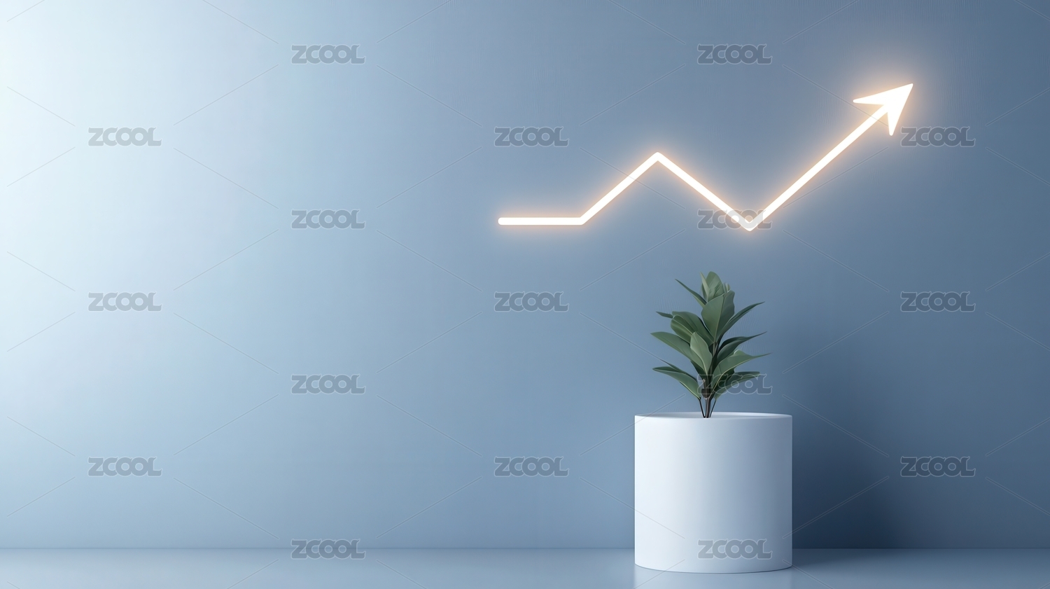发光箭头配绿植