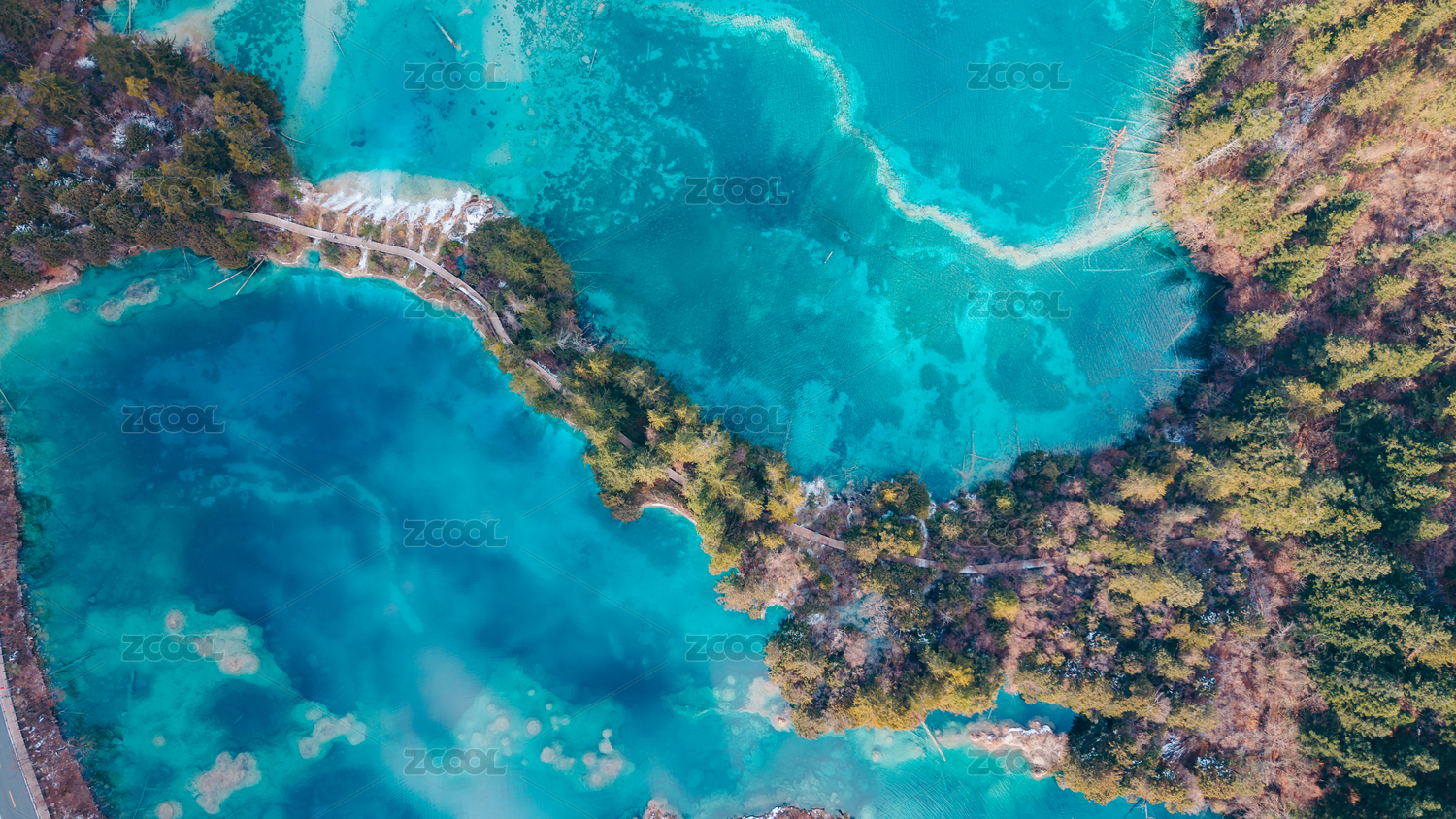 航拍初冬的九寨沟风光,五花海