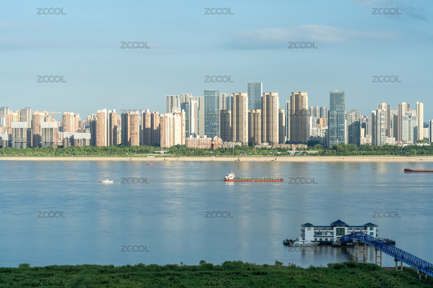 武汉长江沿岸风光,武昌渡轮码头看汉阳龟山