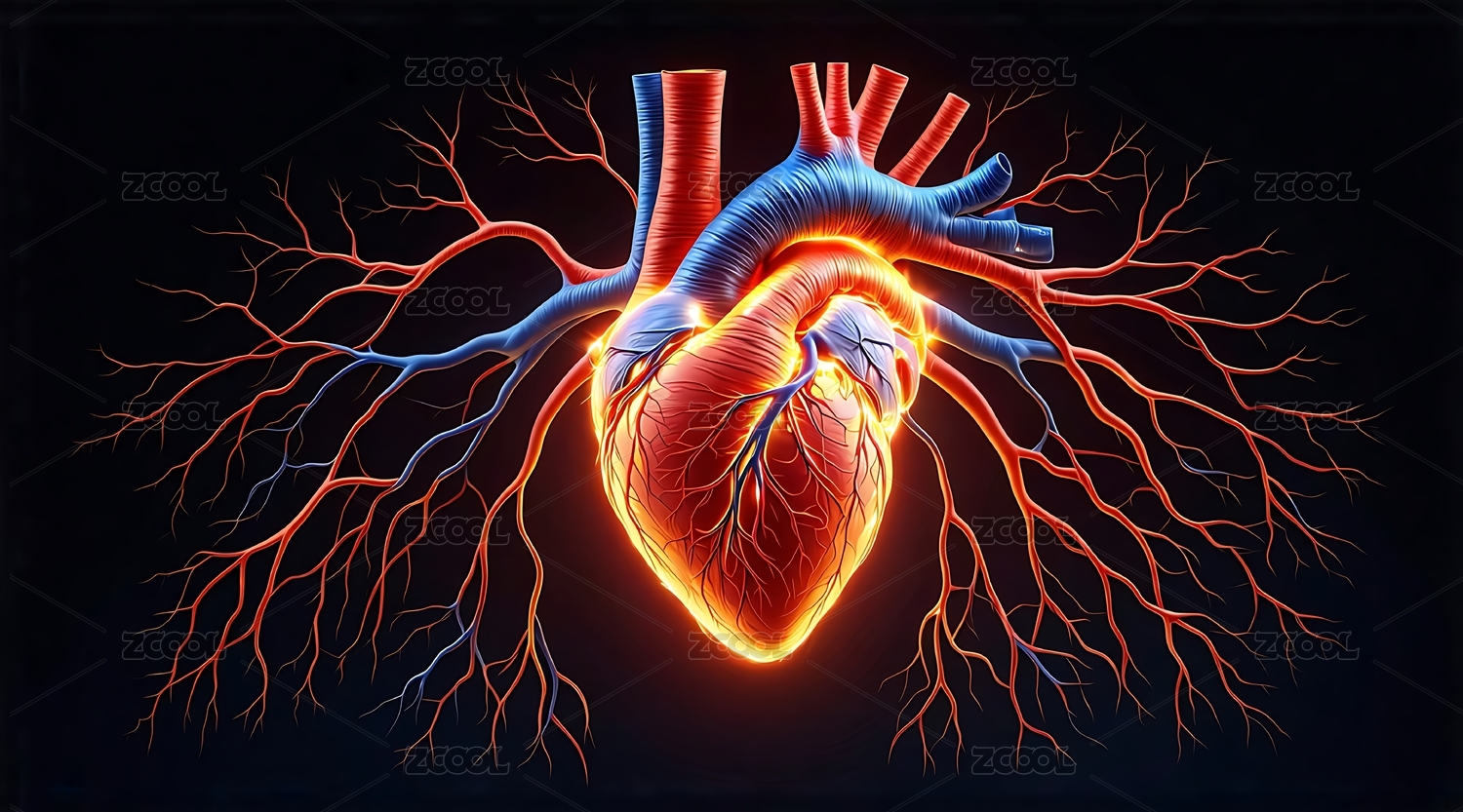 蓝色心脏 3D 模型呈现医学科技的装饰视