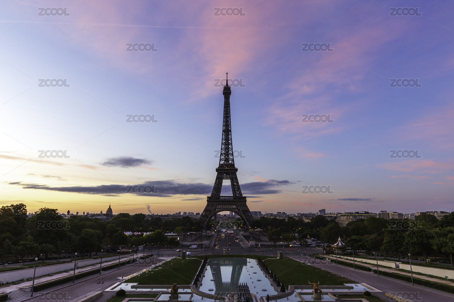 法国巴黎埃菲尔铁塔黄昏时分的景观