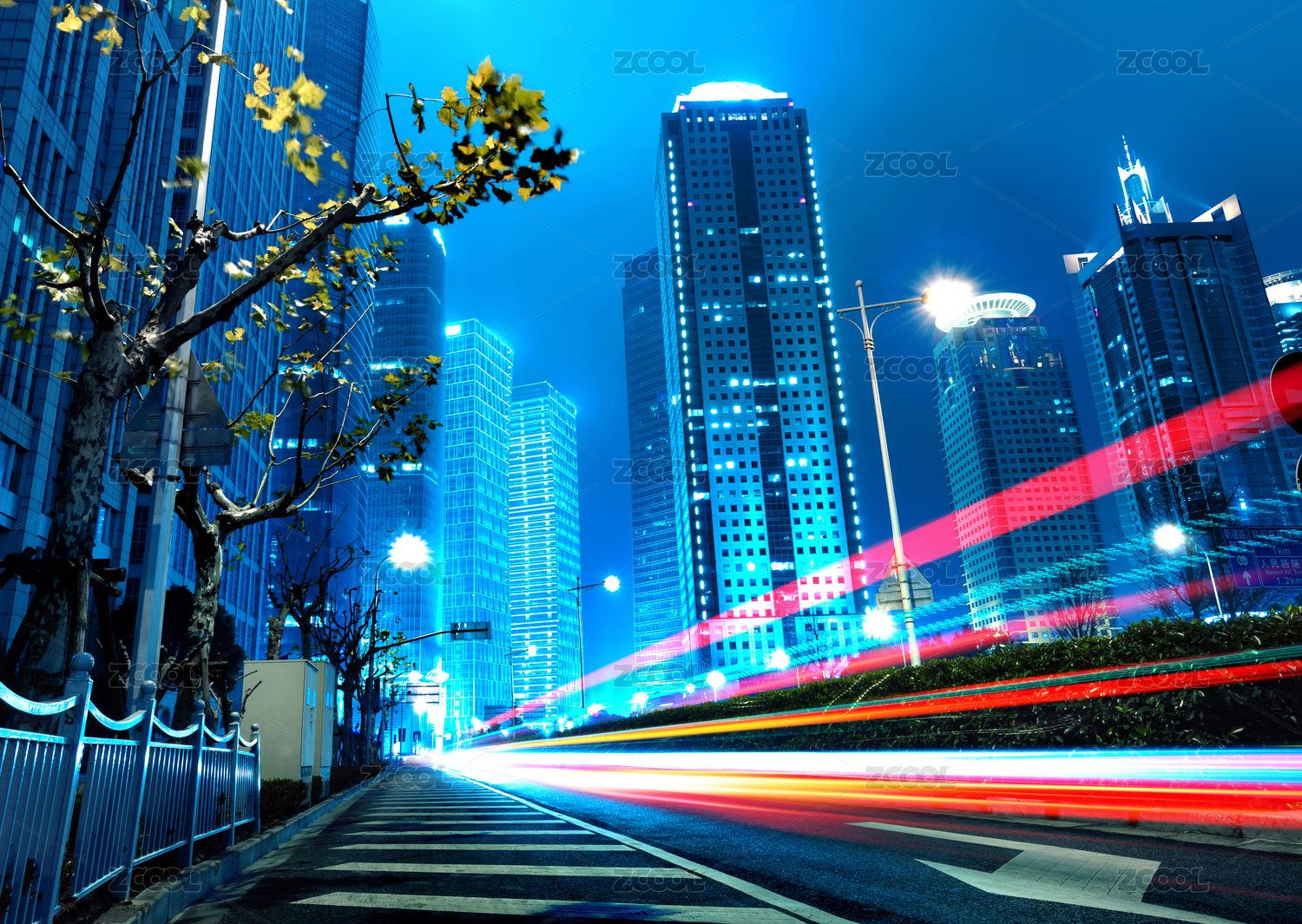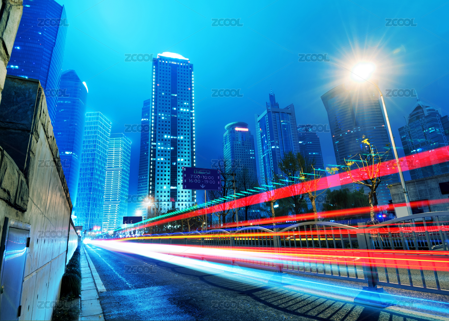 上海城市景观 飞驰的汽车尾灯形成的光的轨迹