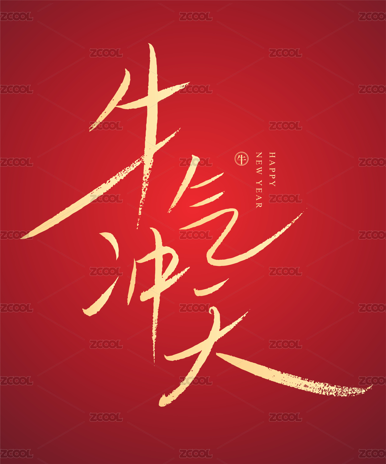 牛气冲天,牛年,书法,字体设计,毛笔字,2021,HEZODIAC2021,牛年大吉