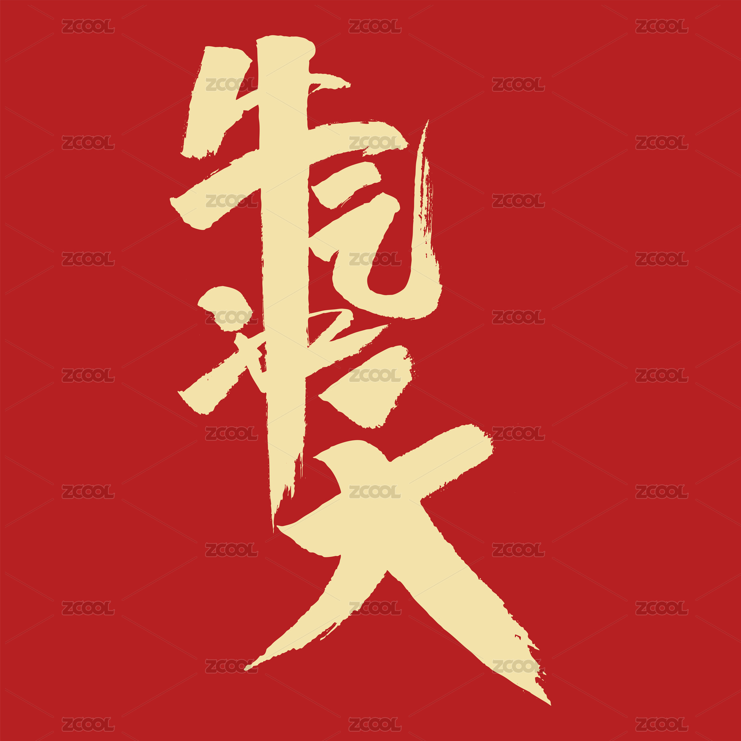 牛年 力大如牛 手写中文汉字书法字体