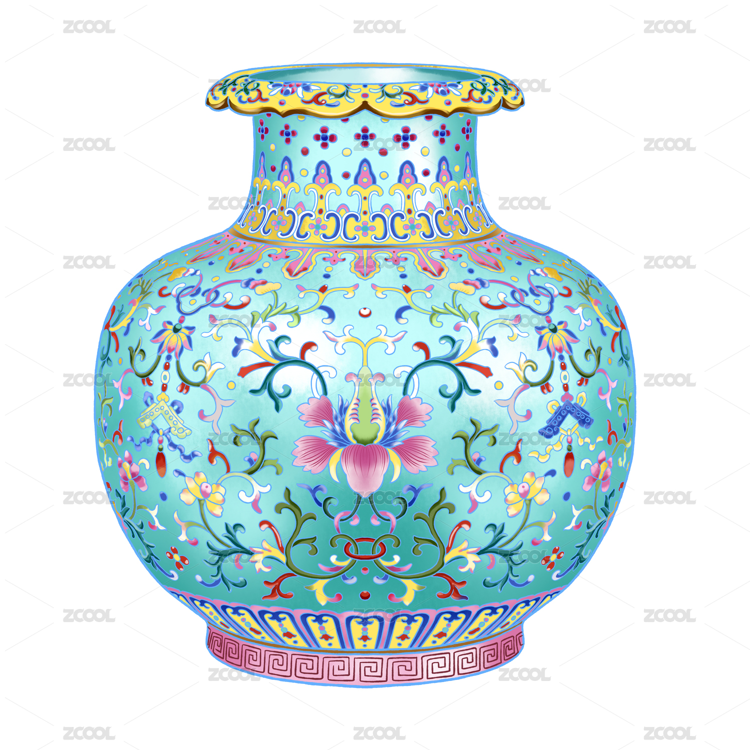 乾隆款绿地粉彩花卉纹石榴尊手绘文物插画
