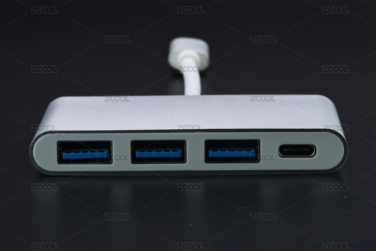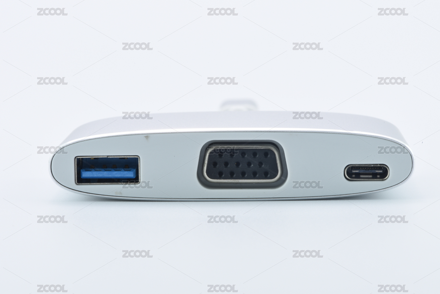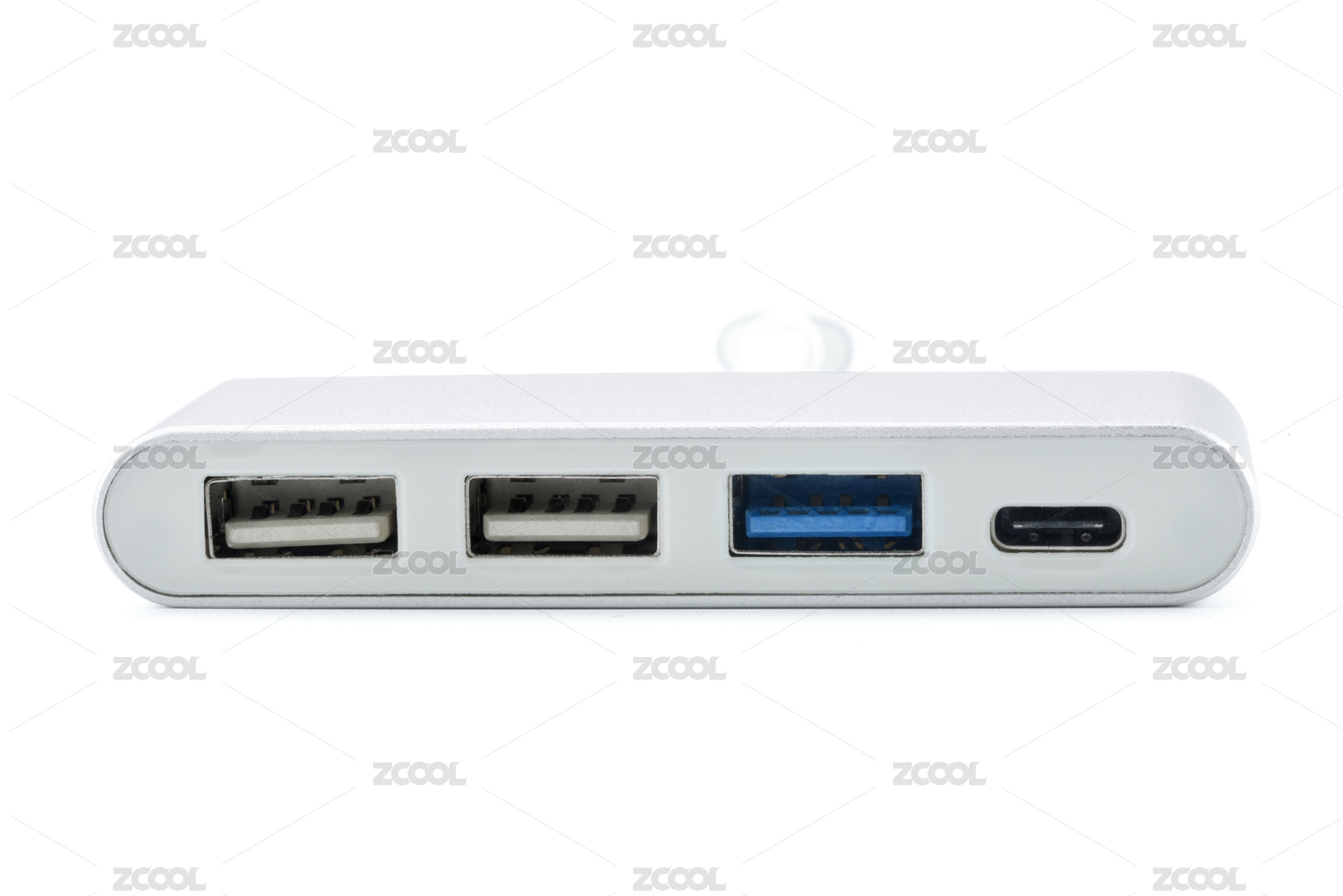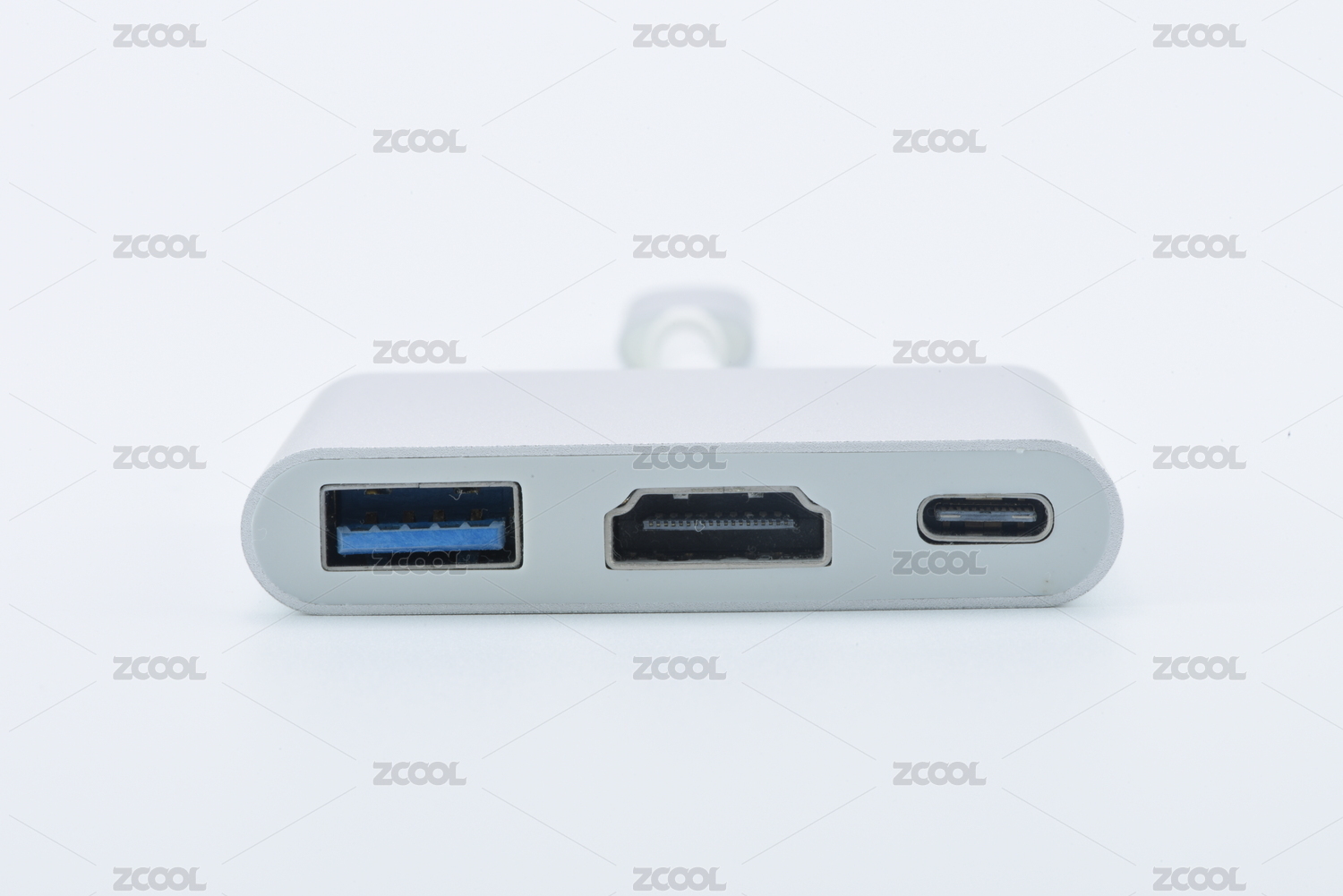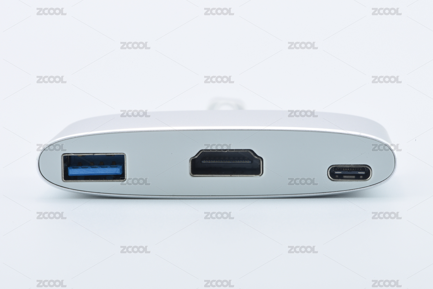 灰白底磨砂金属TypeC扩展头HUB正面特写