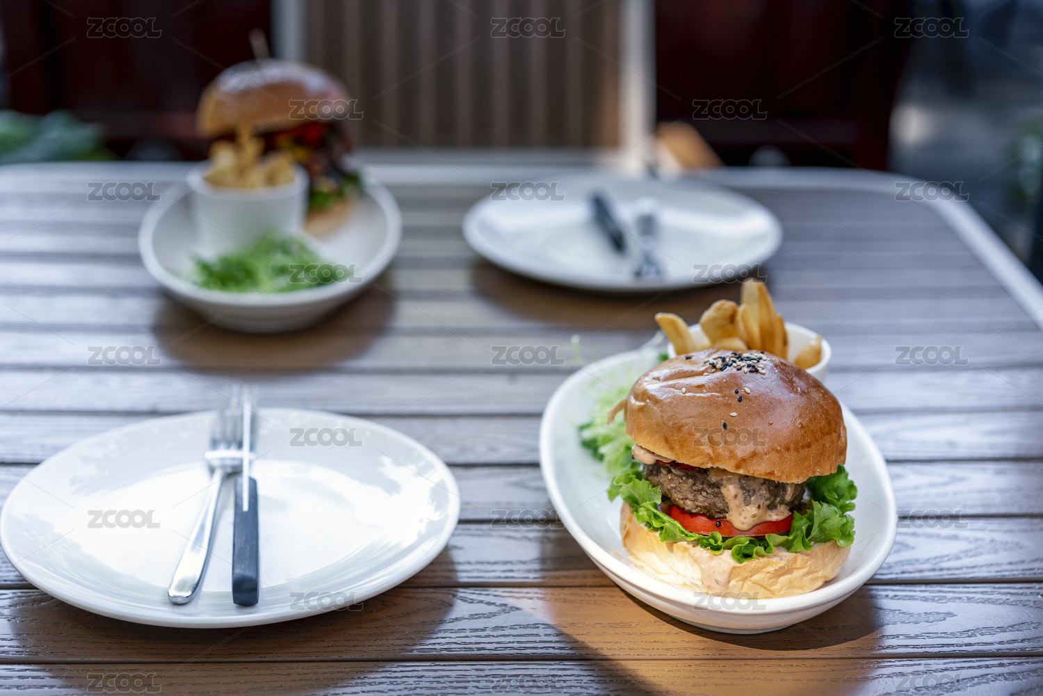 刀,午餐,莴苣,饮食,西红柿,奶酪汉堡,餐馆,美味,桌子,无人