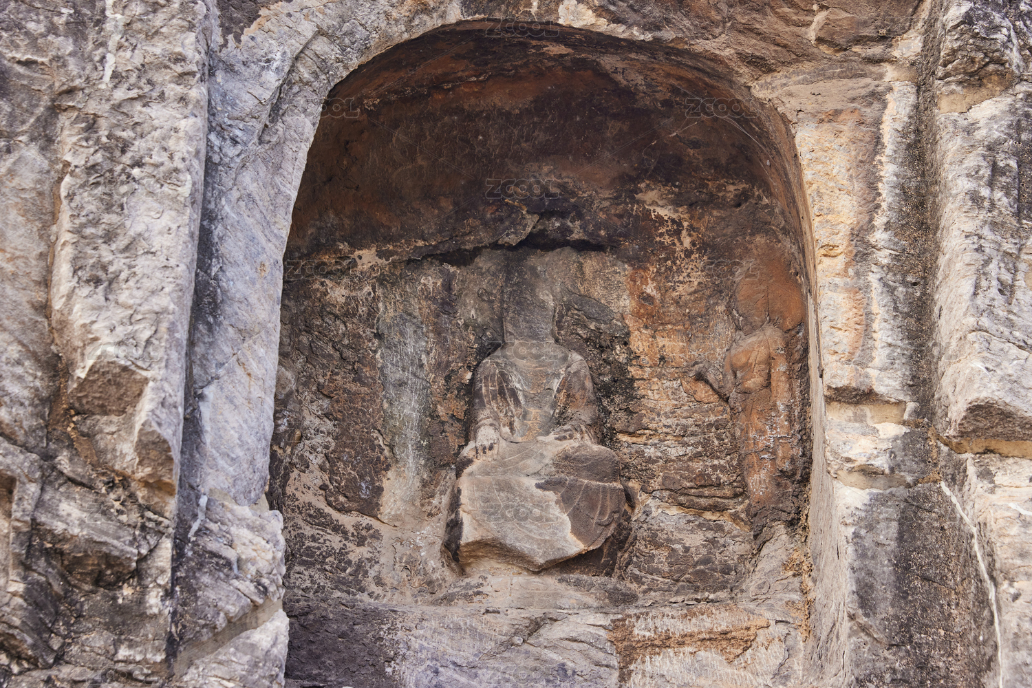 河南洛阳龙门石窟石壁上的佛像
