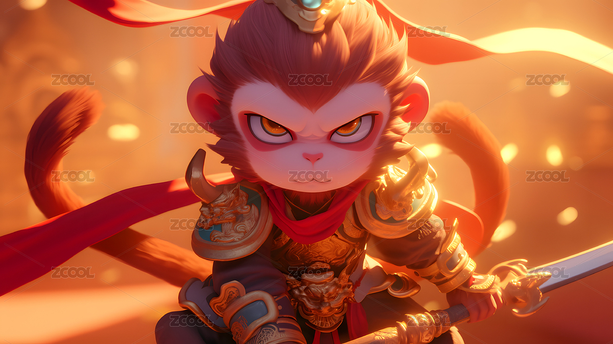 AIGC202407,插画,卡通,孙悟空,猴子,猴,猴年,生肖猴,可爱,中国风