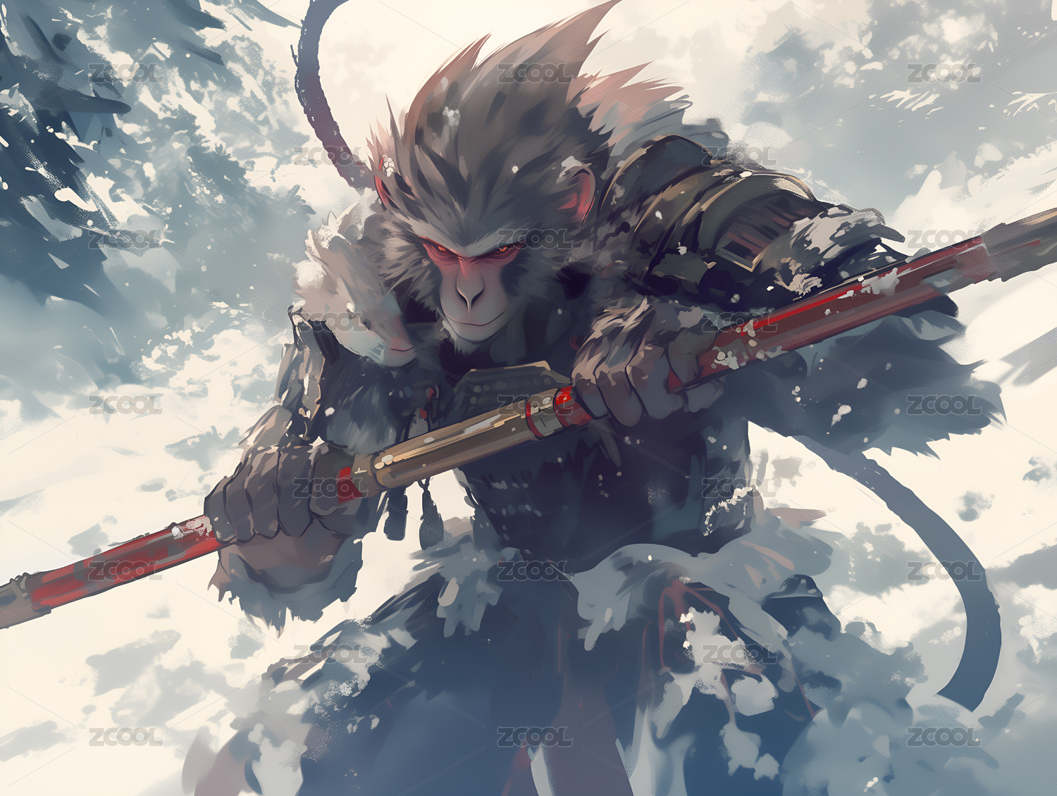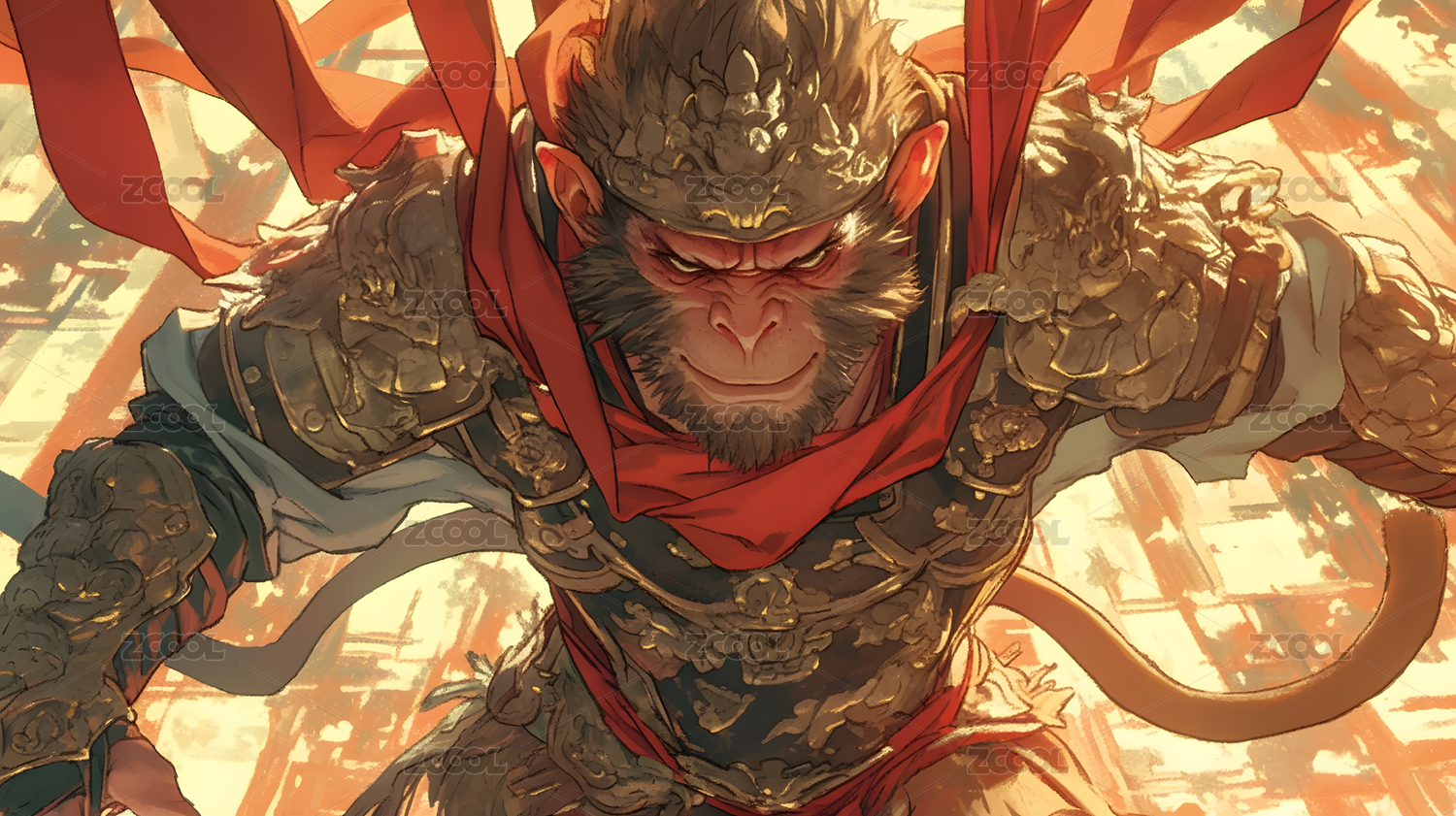 AIGC202407,插画,卡通,孙悟空,猴子,猴,猴年,生肖猴,中国风,国潮风