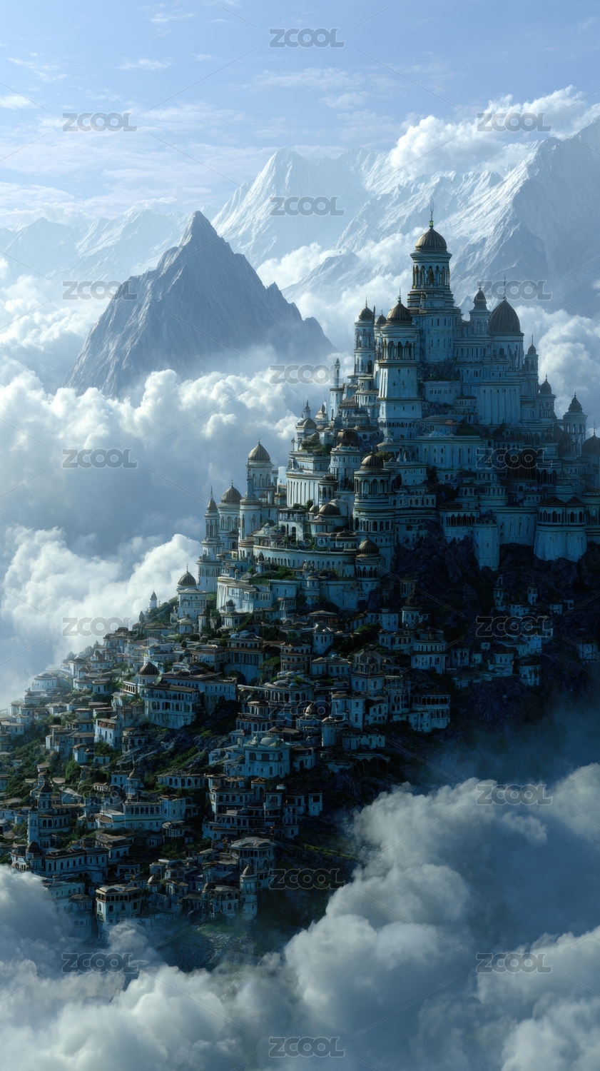 空中岛屿天空之城彩云梦幻唯美创意设计艺术
