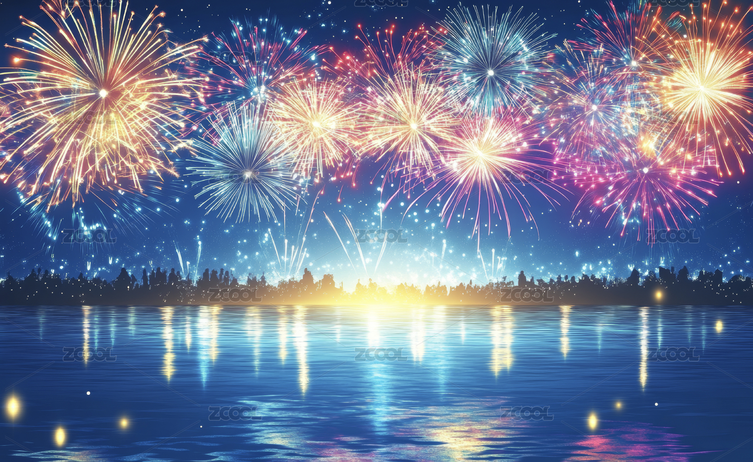 夜空烟花倒影美景
