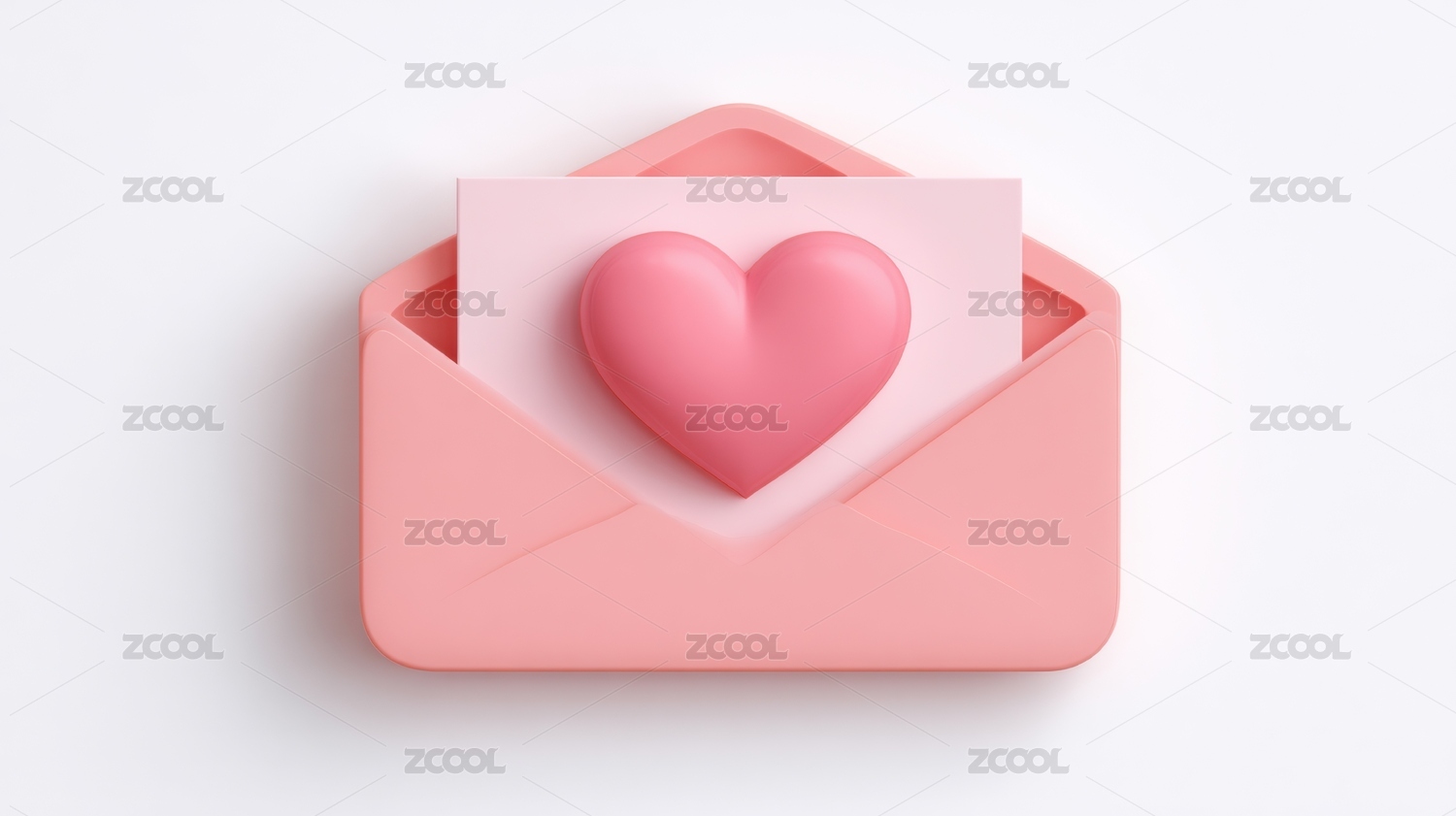情人节,3D,爱心,信封,元素,素材,插画,卡通,卡通元素,卡通素材