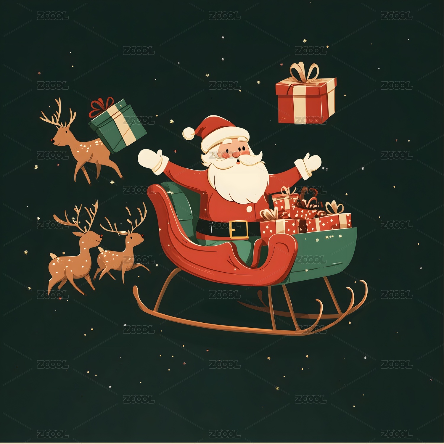 圣诞老人和驯鹿礼物插画图