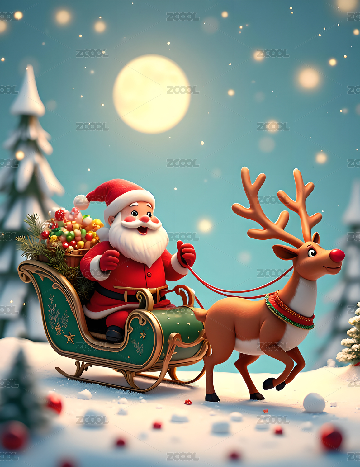 可爱的圣诞老人和驯鹿
