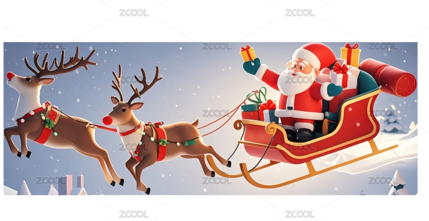 3D渲染圣诞老人坐着雪橇送礼物庆祝圣诞节