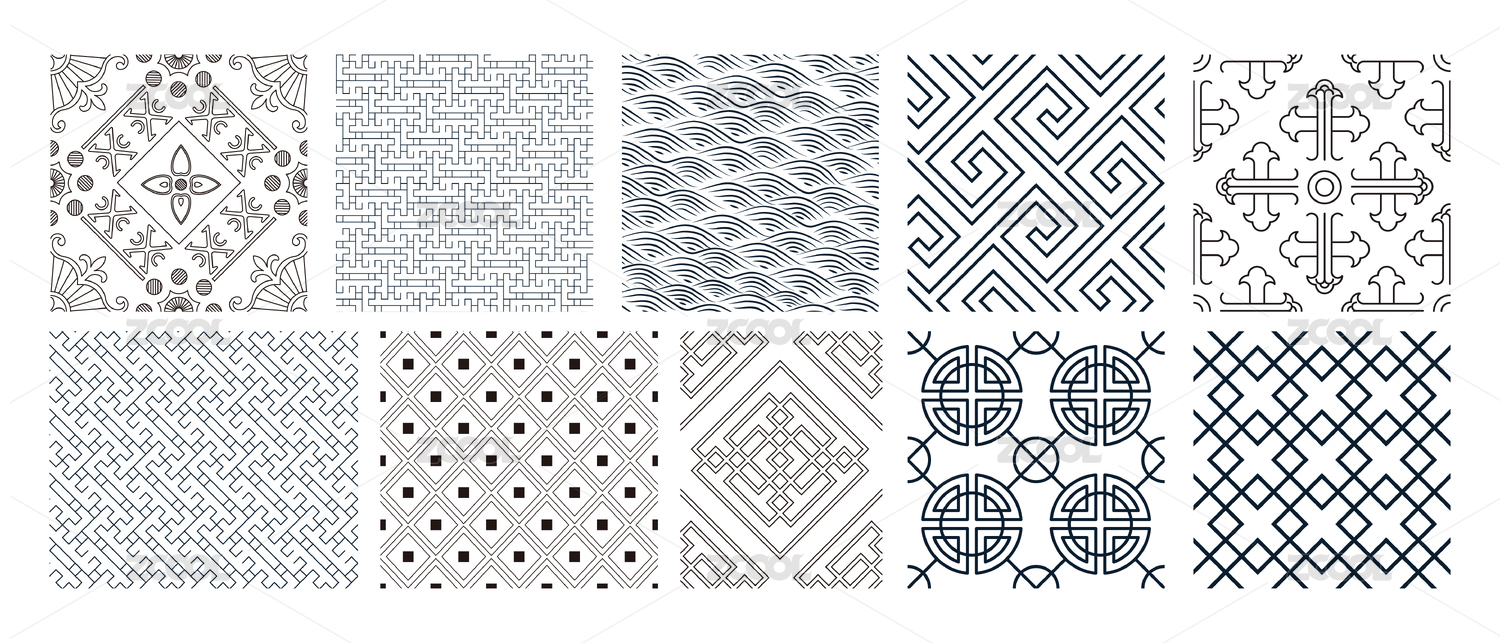 敦煌纹样二方连续图案无缝纹理图手账贴纸