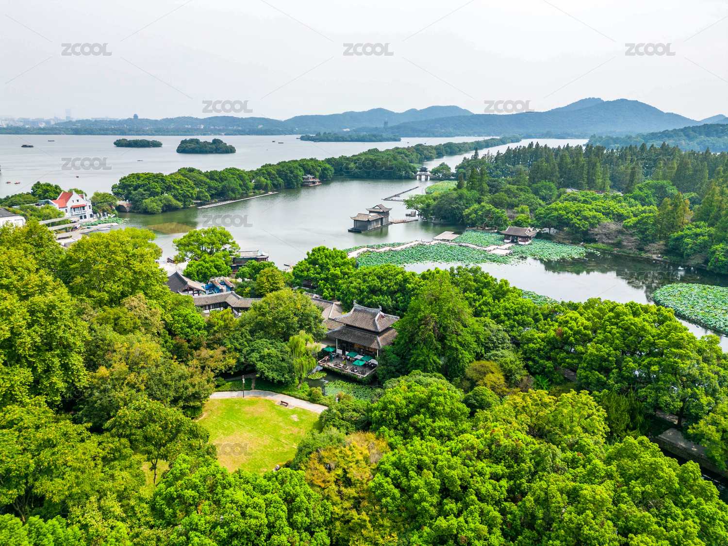 杭州,西湖,曲院风荷,航拍视角,航拍,岳湖,景区,景点,高视角,俯瞰