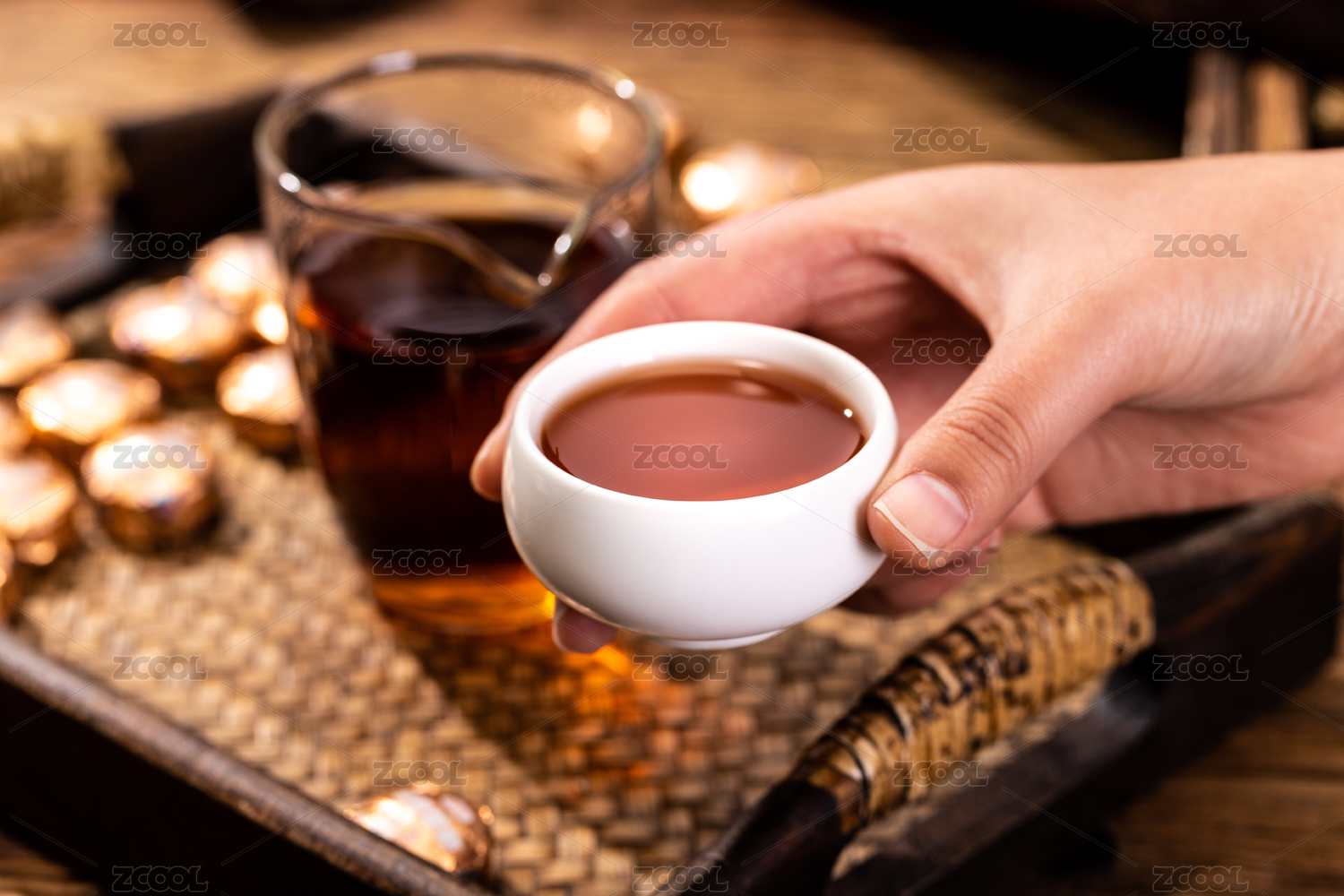 木纹背景上的普洱茶