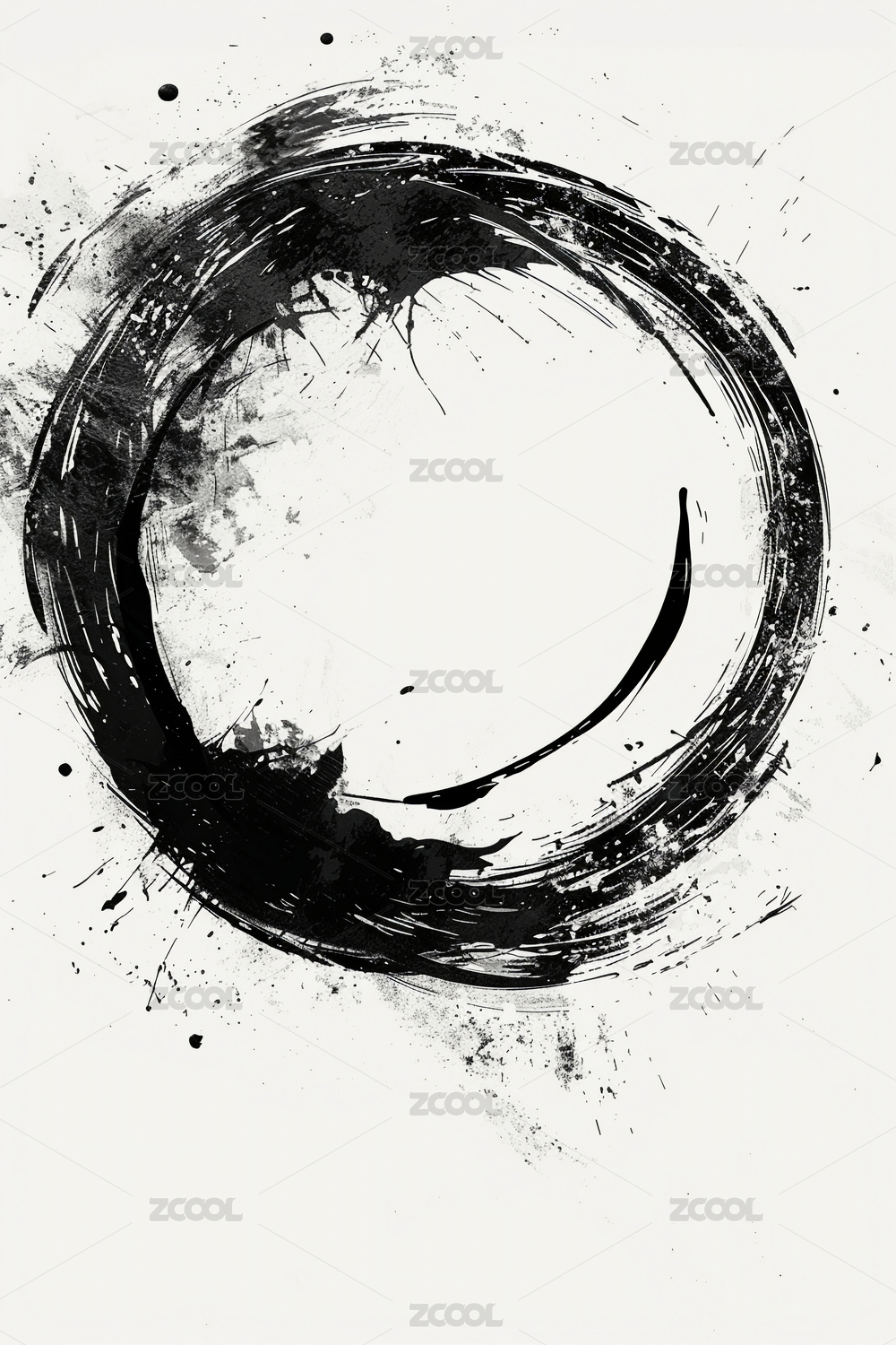 水墨,泼墨,素材,圆圈,圆形,墨渍,喷溅,毛笔,白色背景,黑白