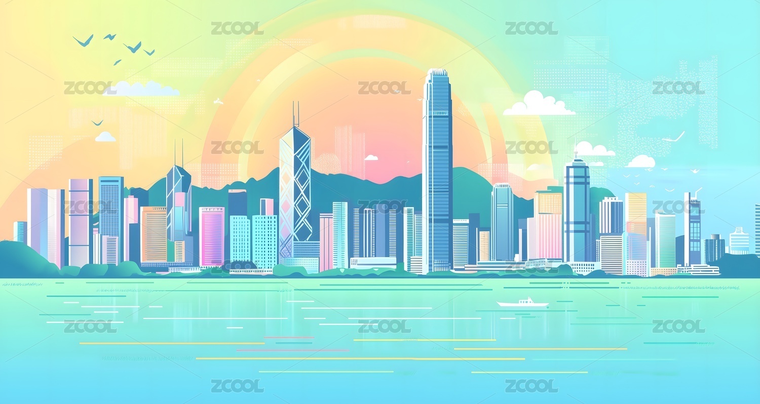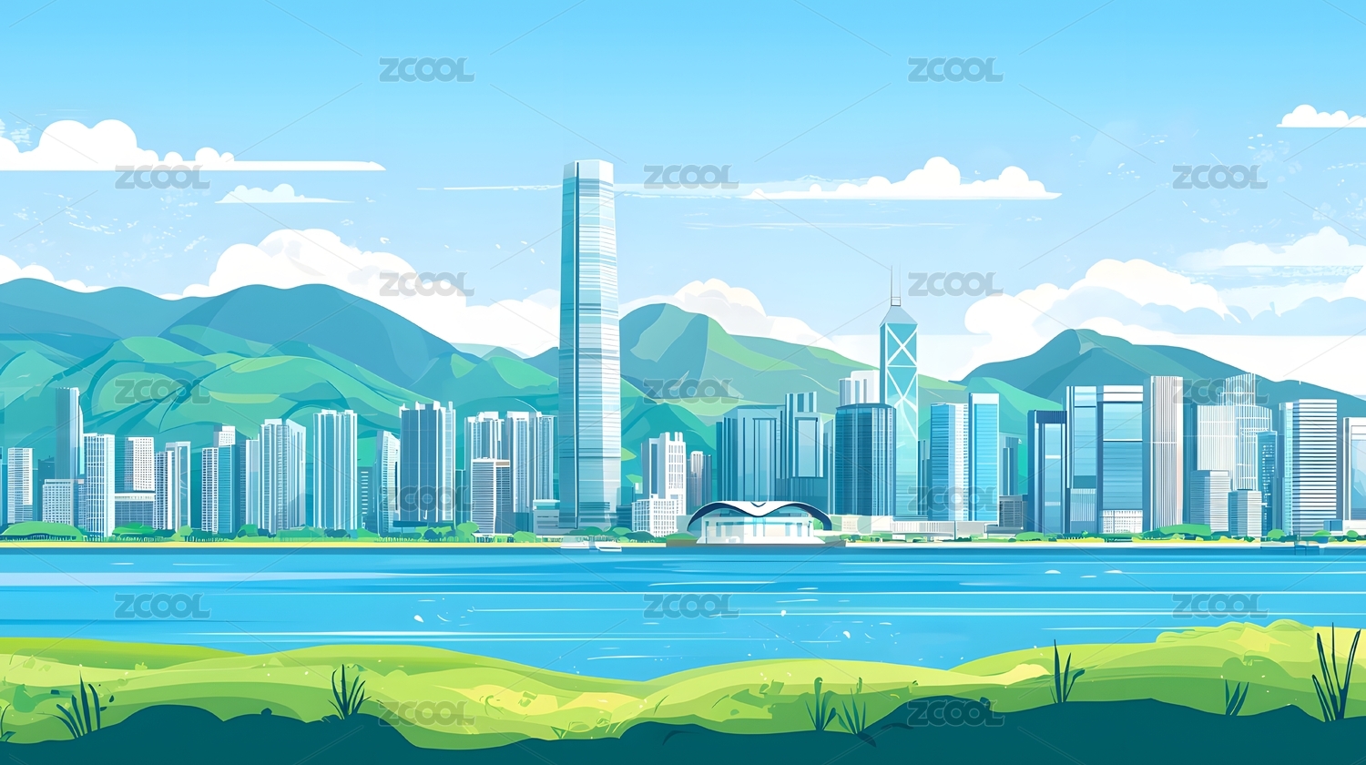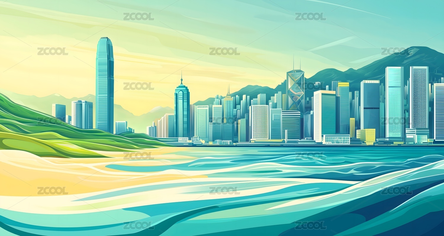 植物,高楼大厦,城市,风景,唯美,建筑,插画
