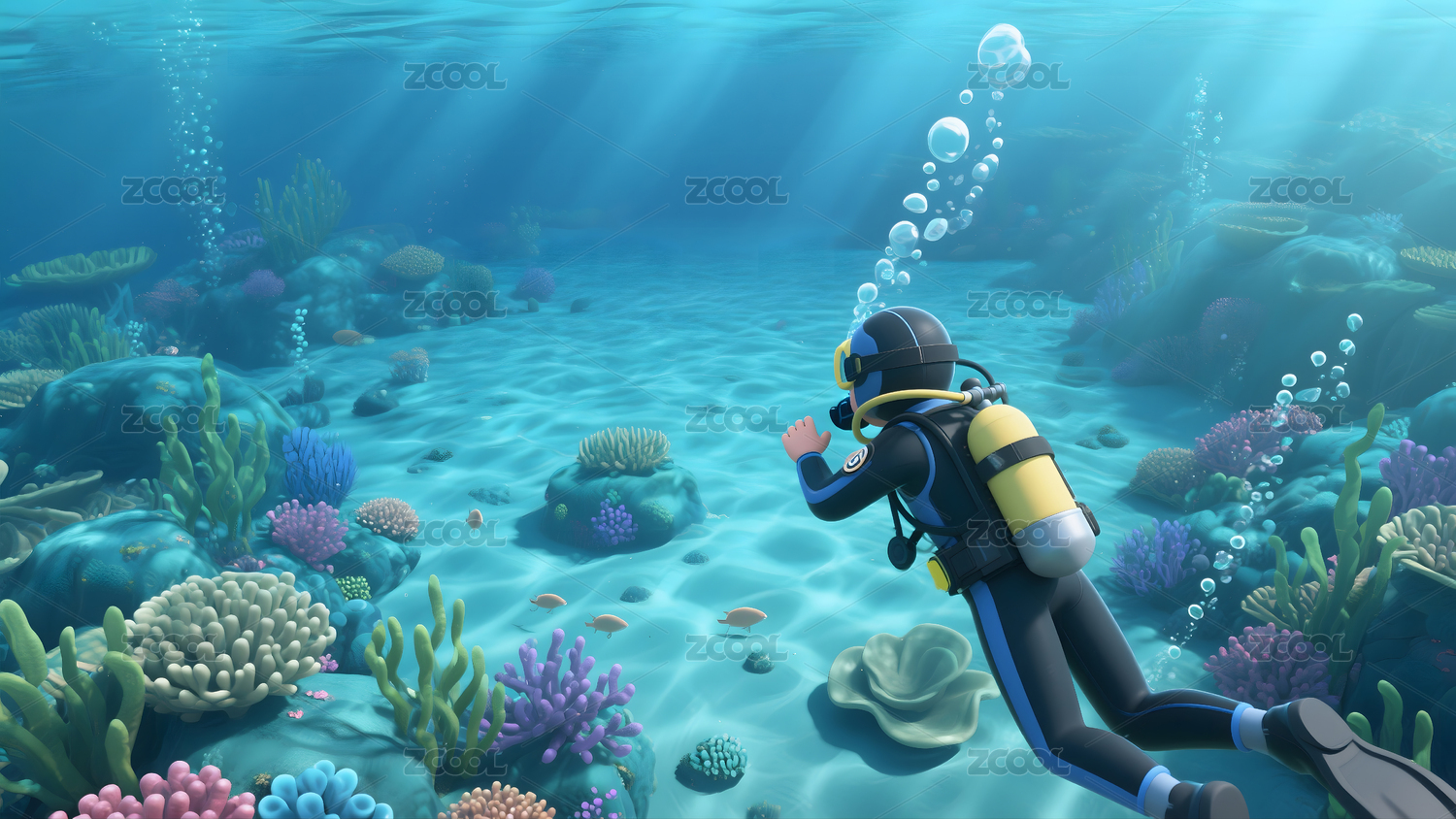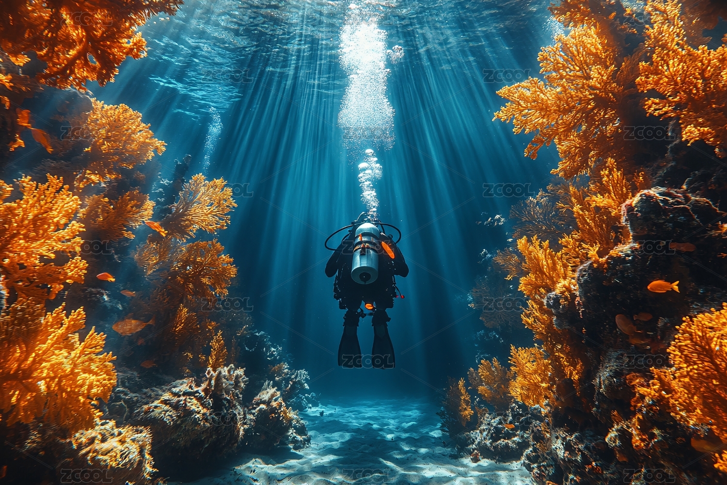 潜水,呼吸器,海洋,生物,珊瑚礁,阳光,光线,游泳,探索,自然