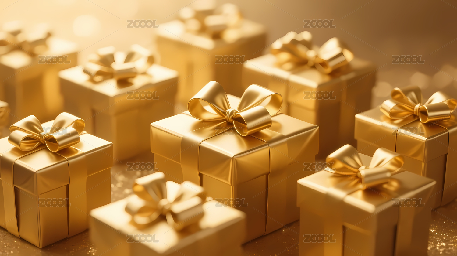 金色,礼盒,堆叠,蝴蝶结,丝带,光泽,圣诞节,生日,惊喜,庆祝