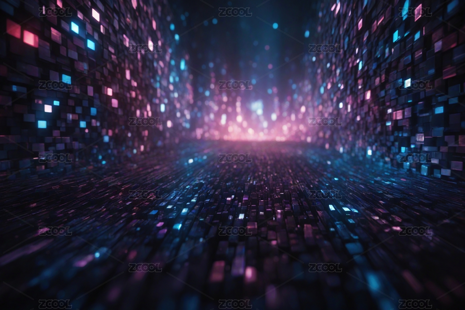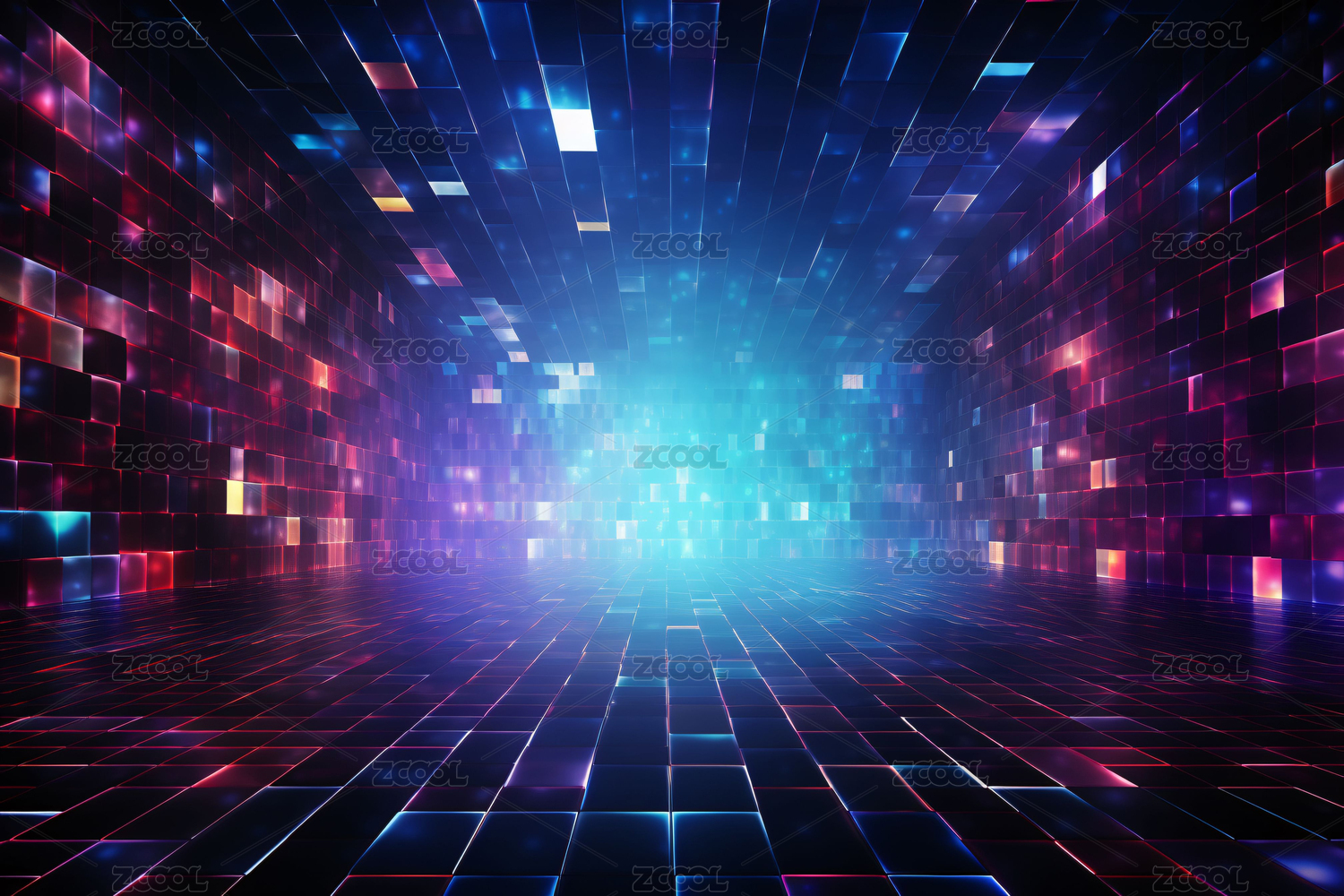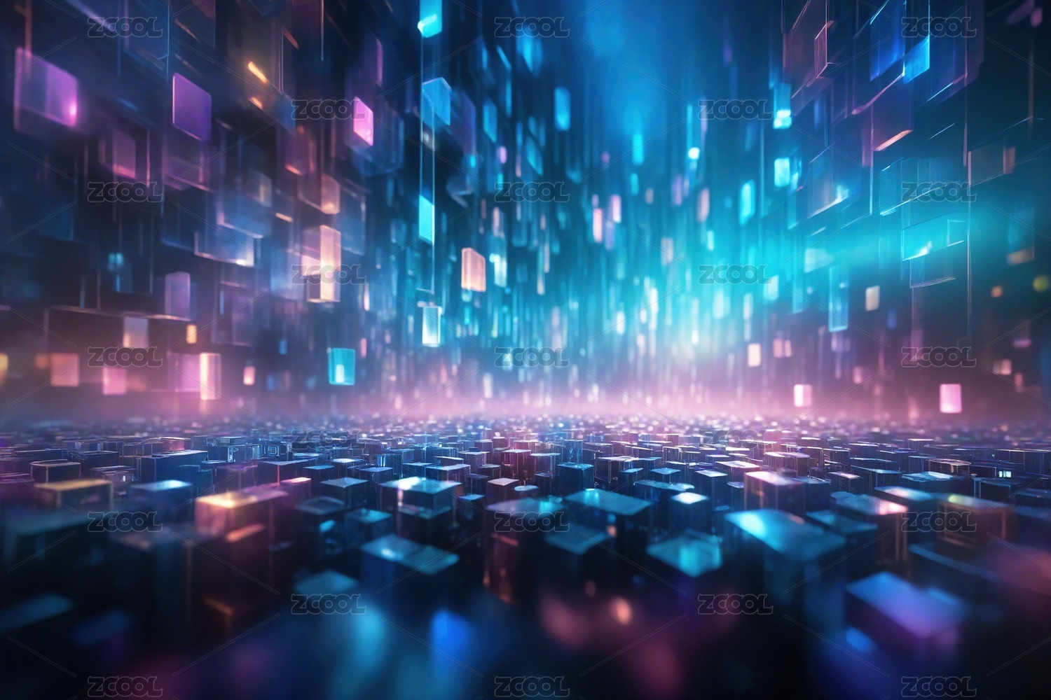 数码科技未来蓝紫色立方体海报背景