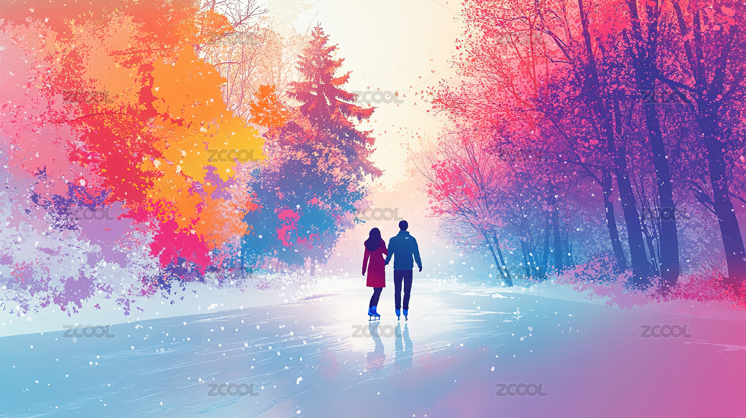 冬天树林里的情侣