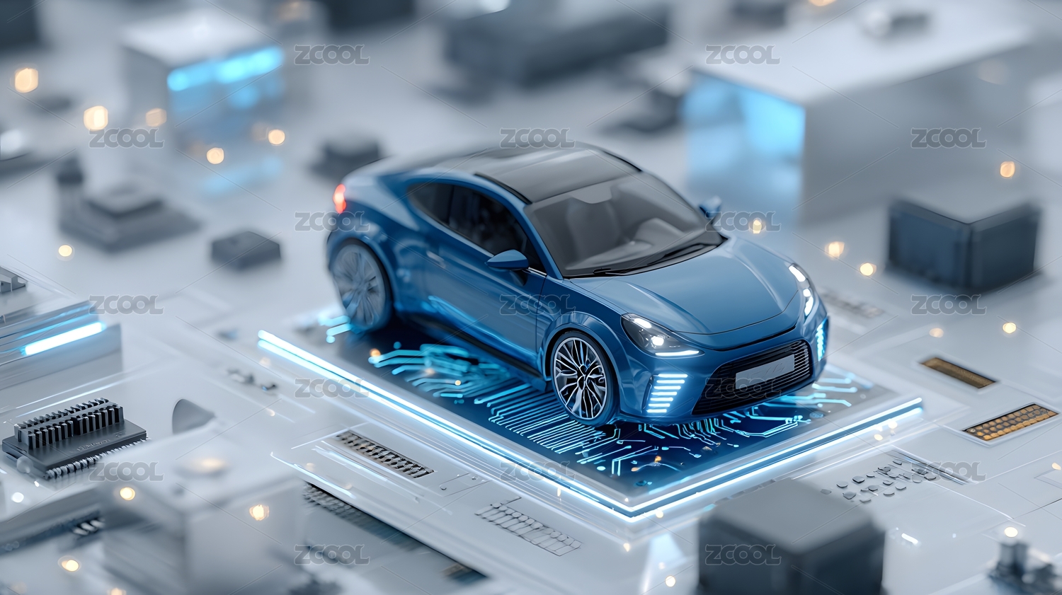 新能源汽车线条3d简洁智能驾驶科技感插画