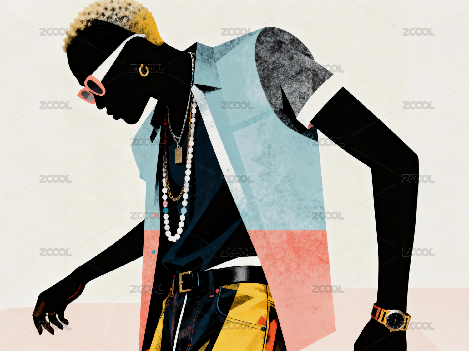 穿橙色连身工装戴墨镜的棕色皮肤厚嘴唇男人