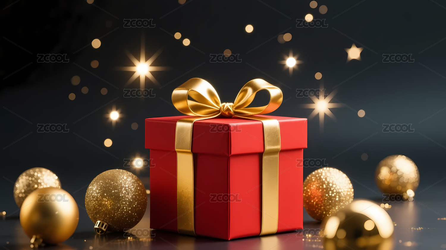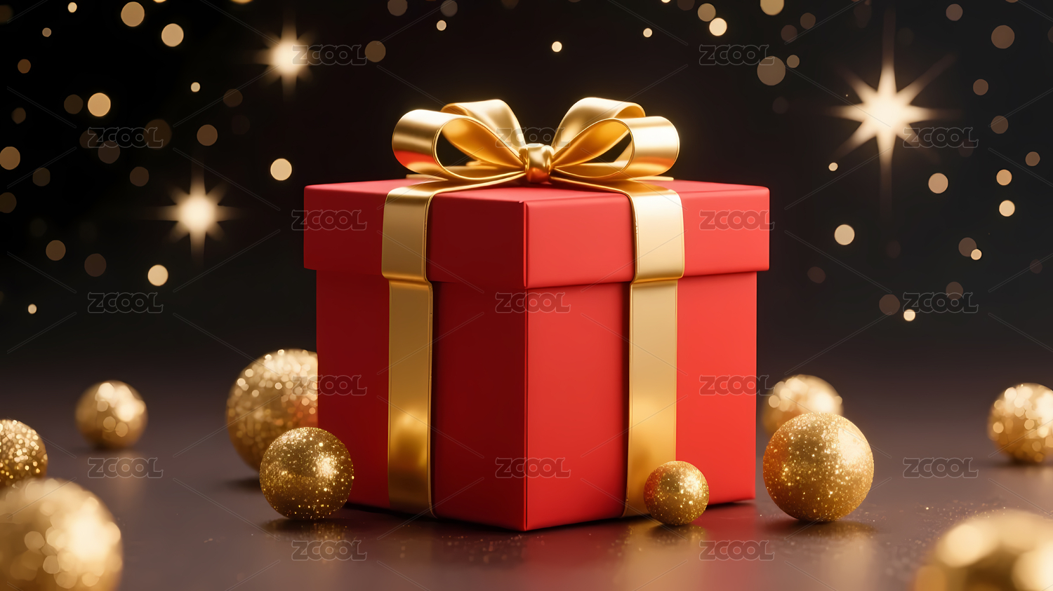 礼物,包装,盒子,缎带,蝴蝶结,圣诞,节日,金色,红色,背景