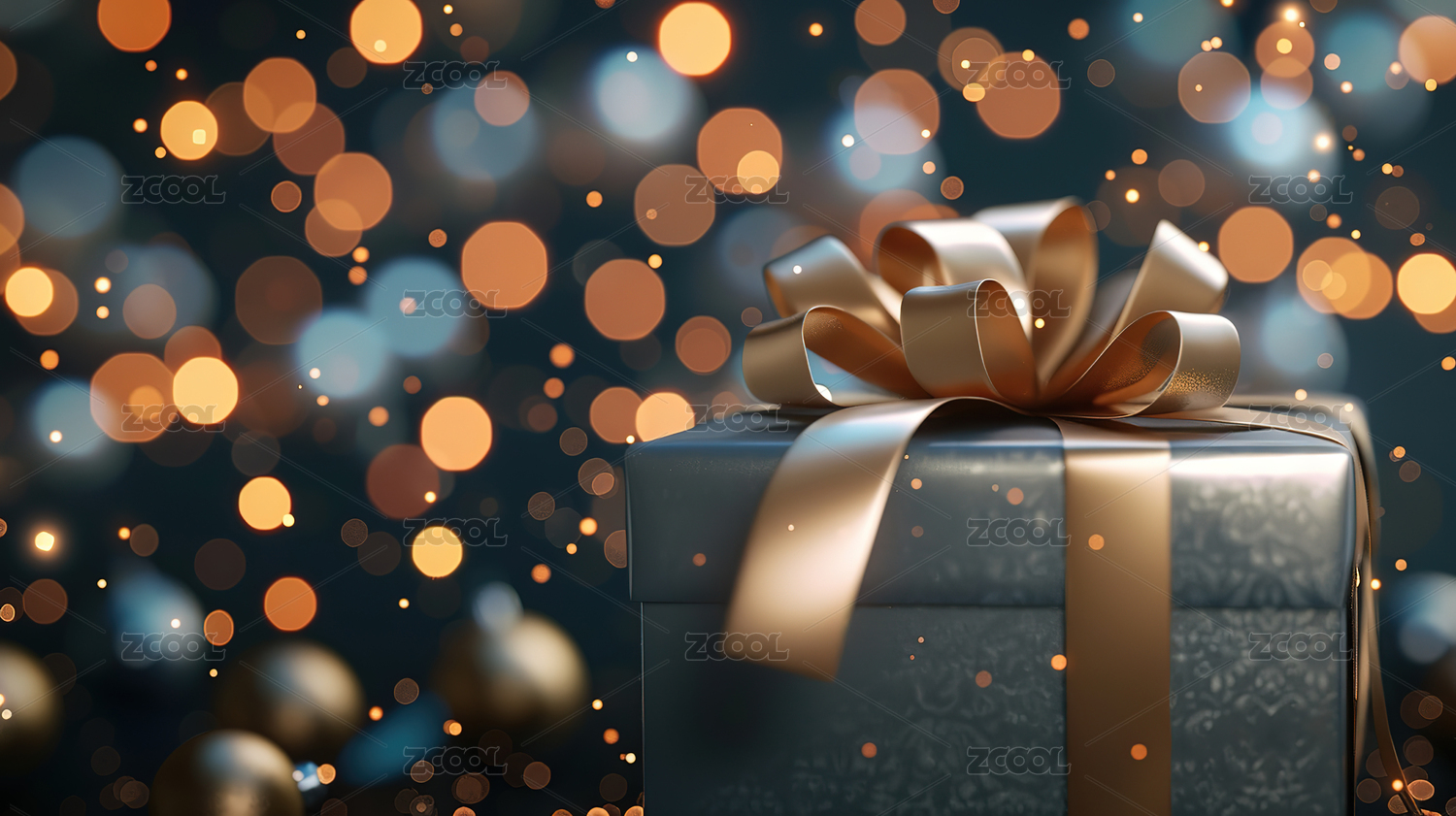 黑色礼盒与金色丝带,奢华闪耀的节日气氛