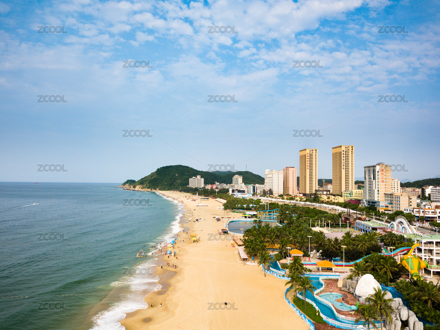 广东省汕尾市城区捷胜镇玫瑰银滩航拍