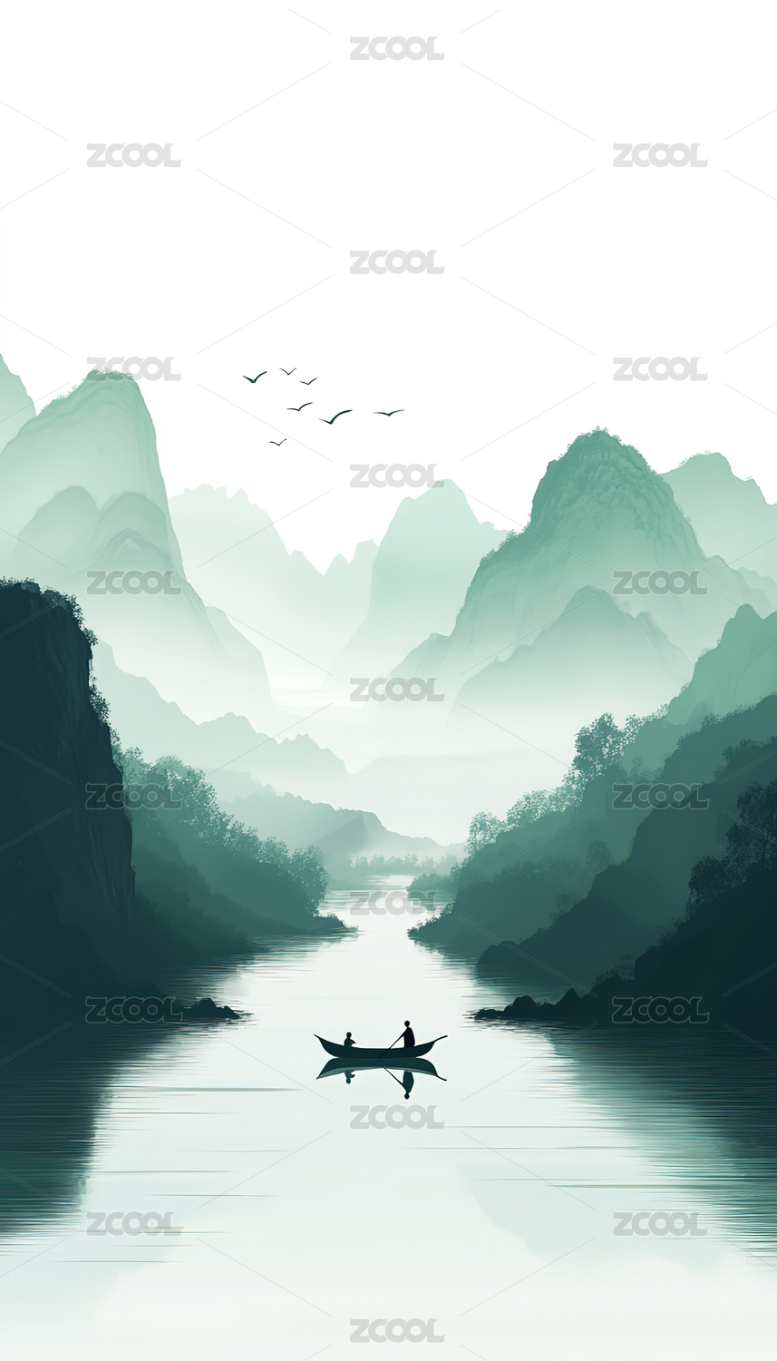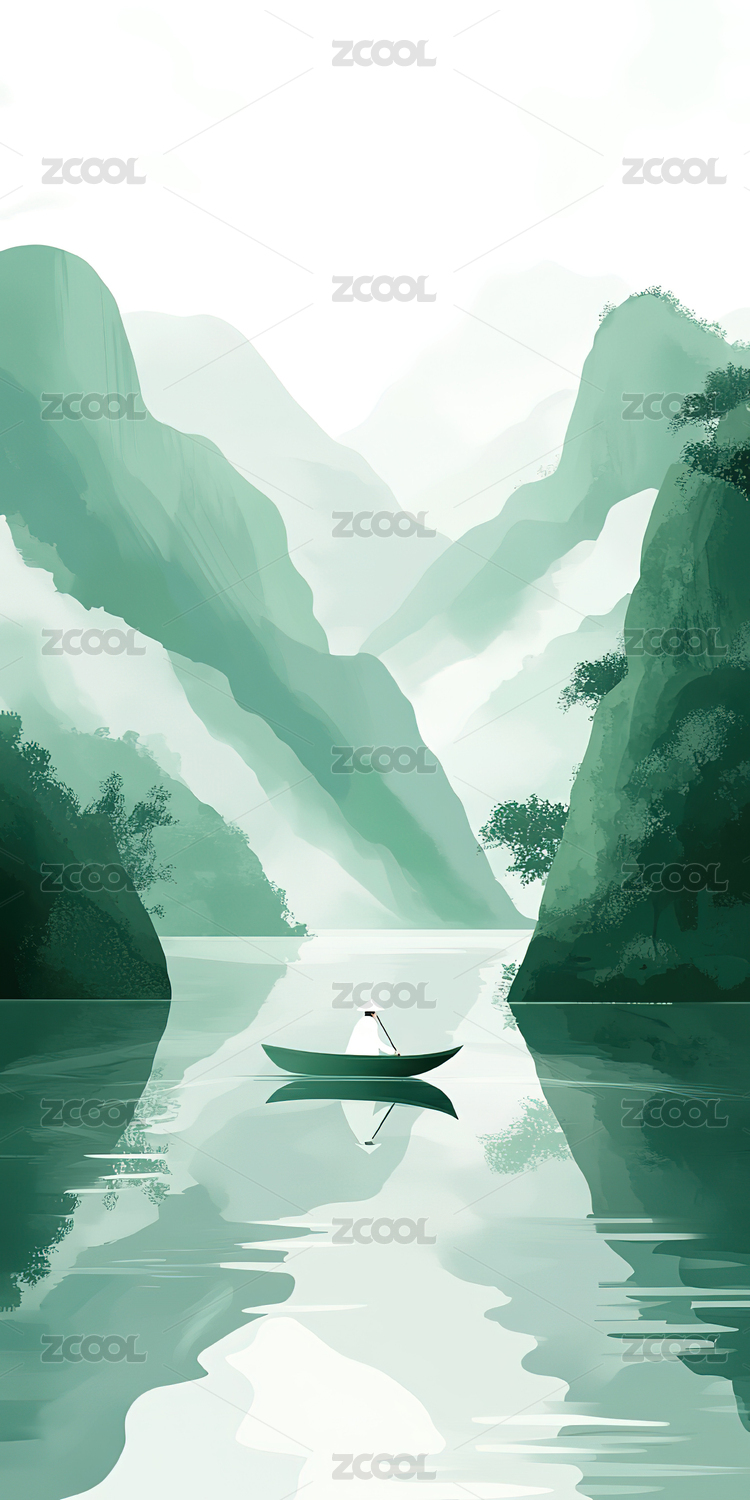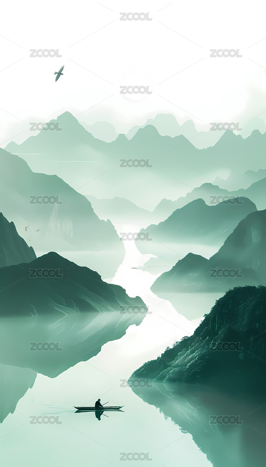 一个人,人,雾,风景,反射,AI数字艺术,云,宁静,背景