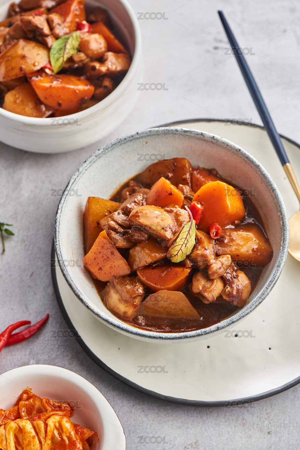 餐桌上碗里的辣椒牛腩炖萝卜