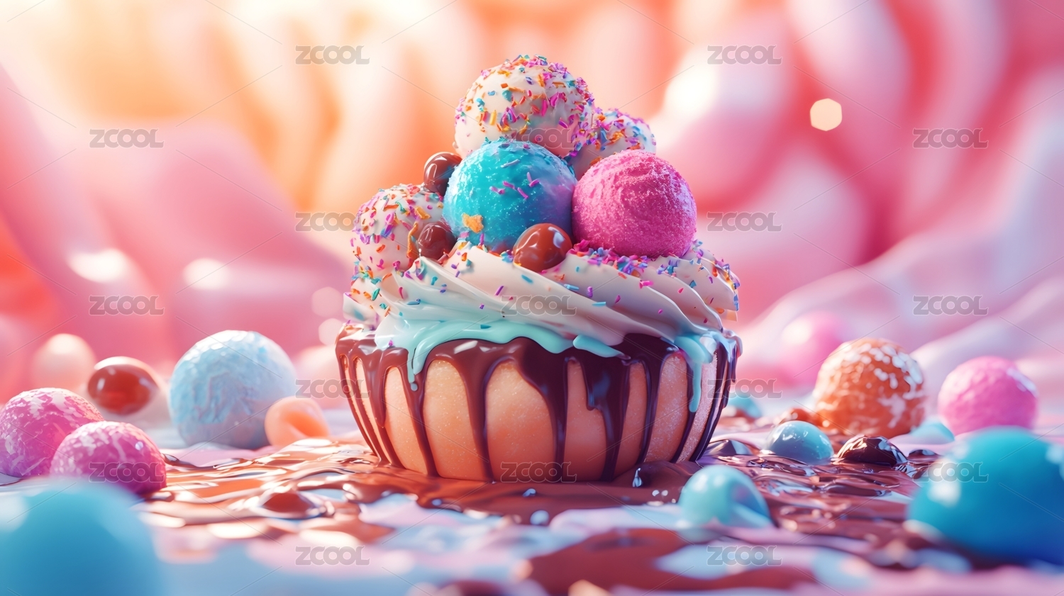 唯美,糖果,奶油,蛋糕,水果,梦幻,立体,建模,3D