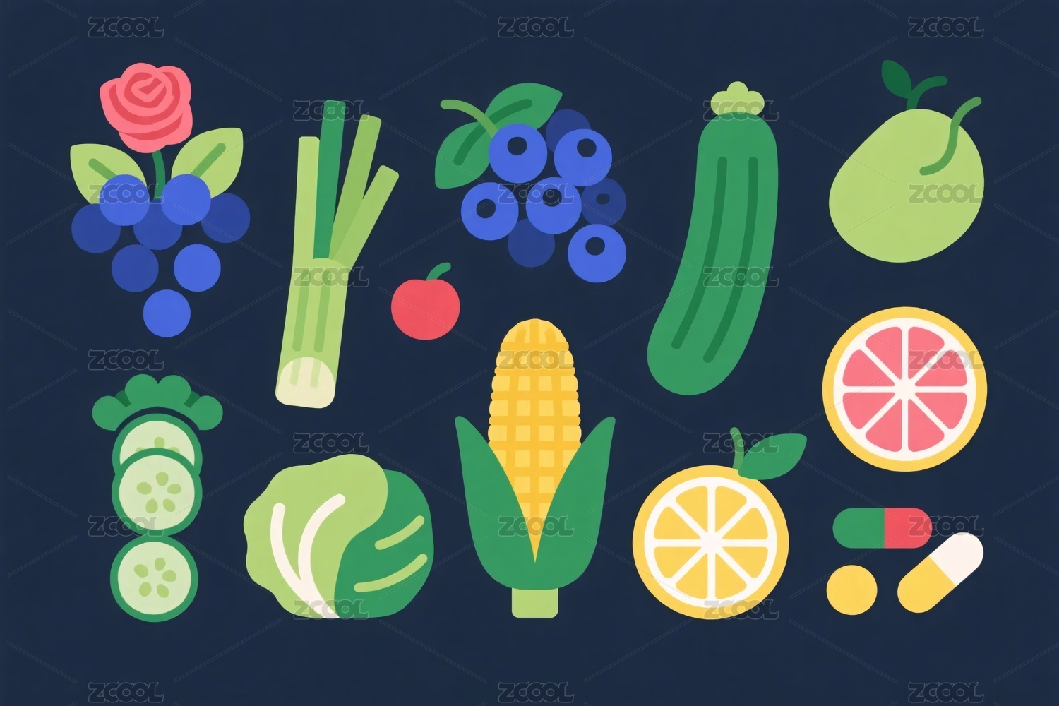 插图,插画,矢量扁平,蔬菜,水果,新鲜,轻食,瘦身