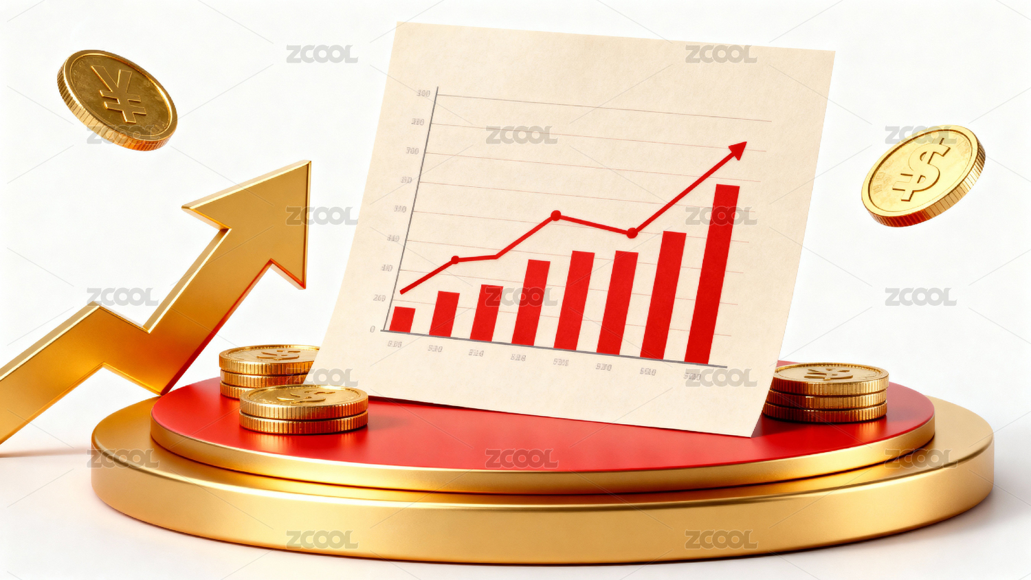 金币堆叠与上升曲线图