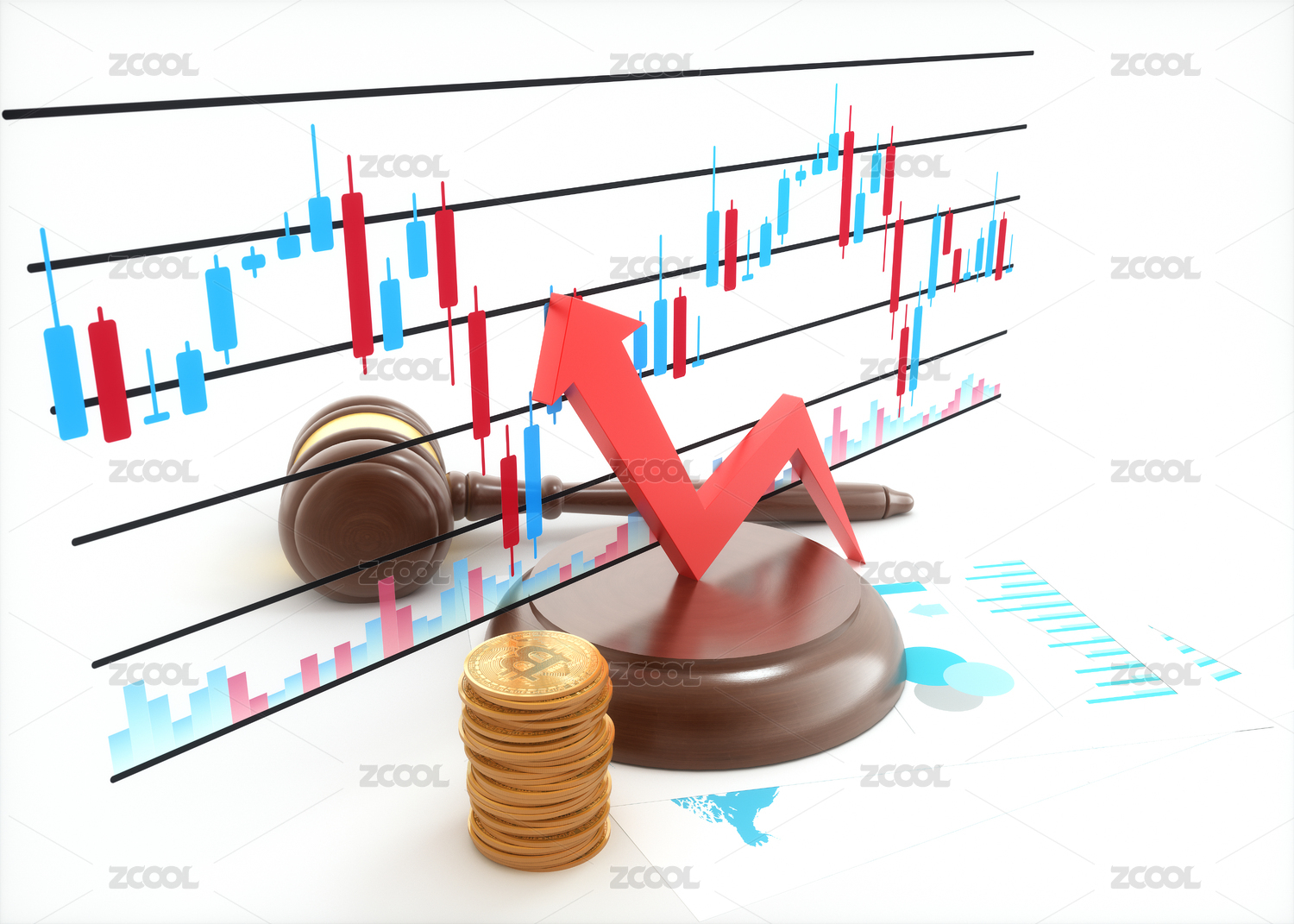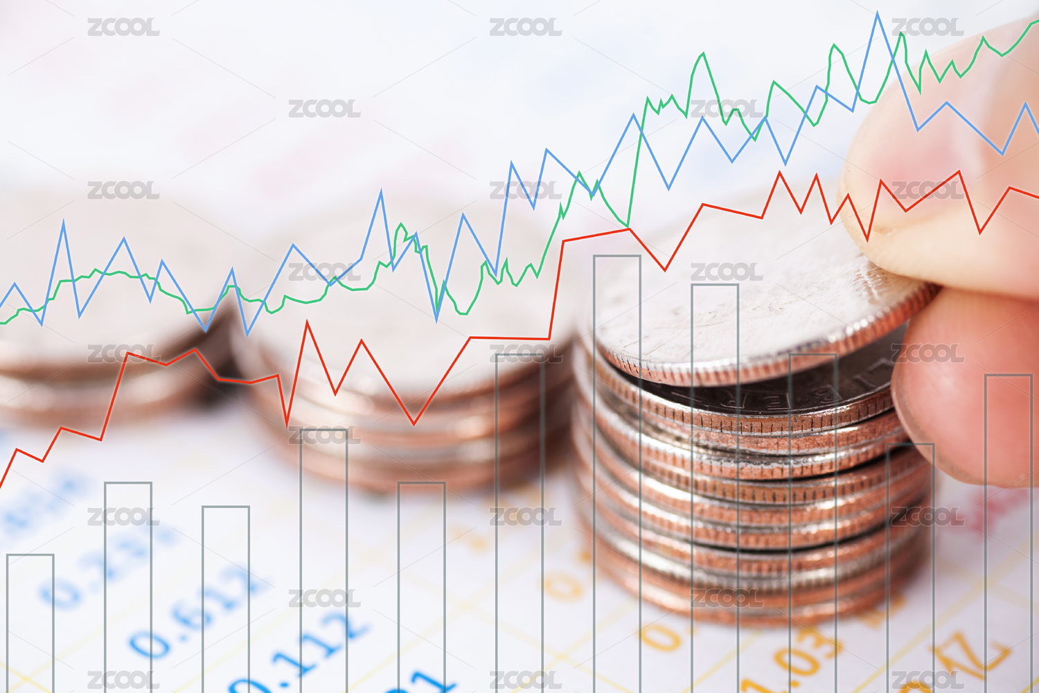 金币堆叠与金融图表